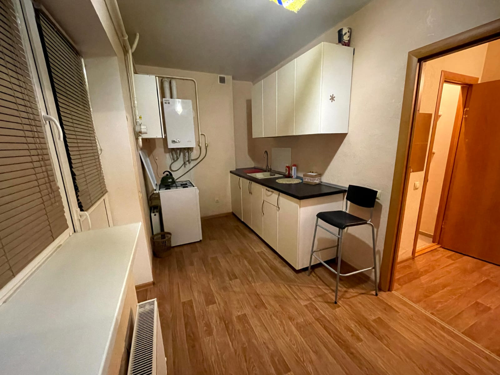Продается 1 ком.квартира 34 кв.м. на 1 этаже. В квартире есть все необходимое для проживания, остается кухонный гарнитур, мебель по необходимости, индивидуальное отопление (2х контурный котел). Большая лождия. Санузел совмещенный. Квартплата выходит небольшая. Во дворе спортивная и детская площадка. Собственник. Торг