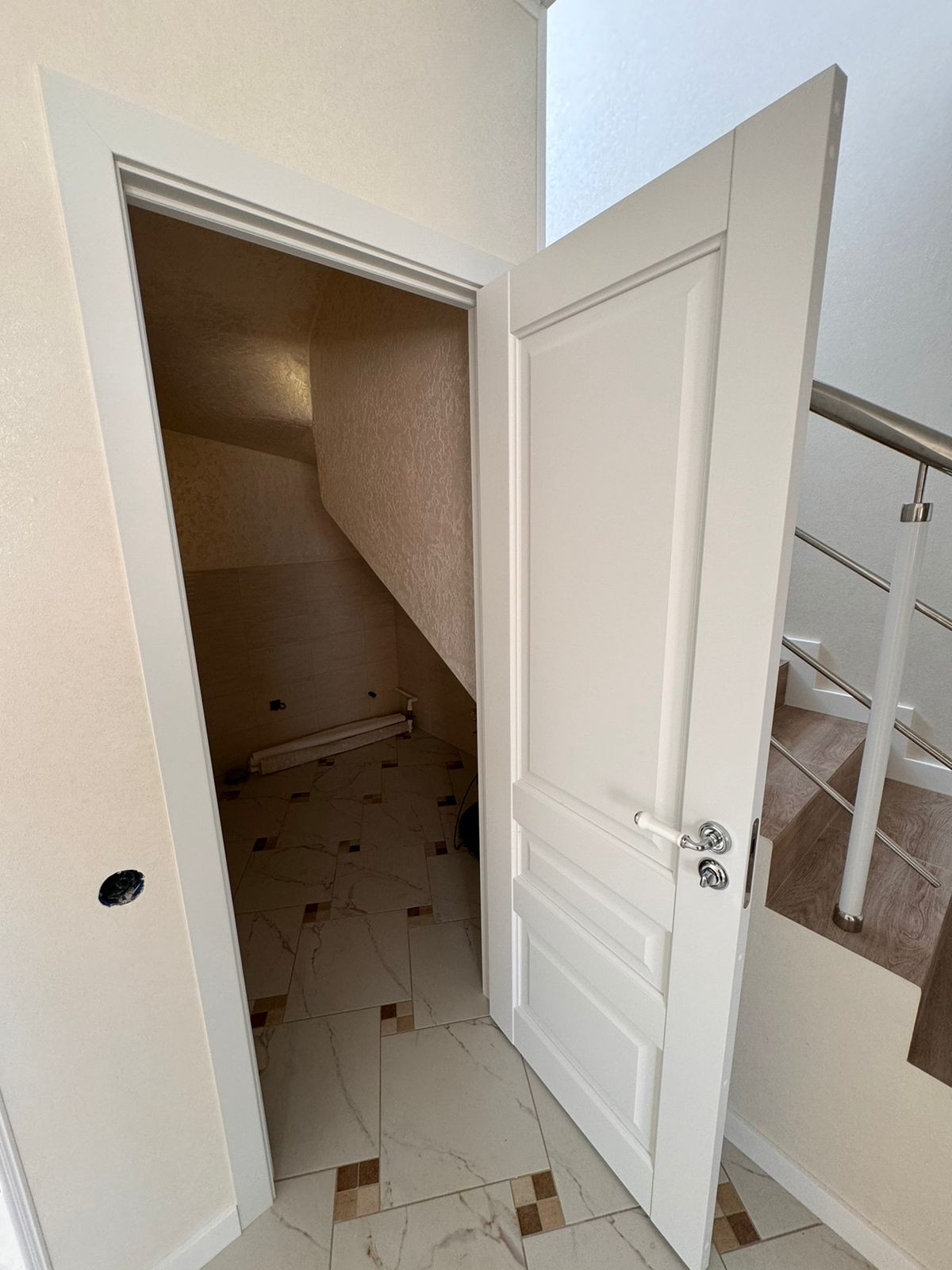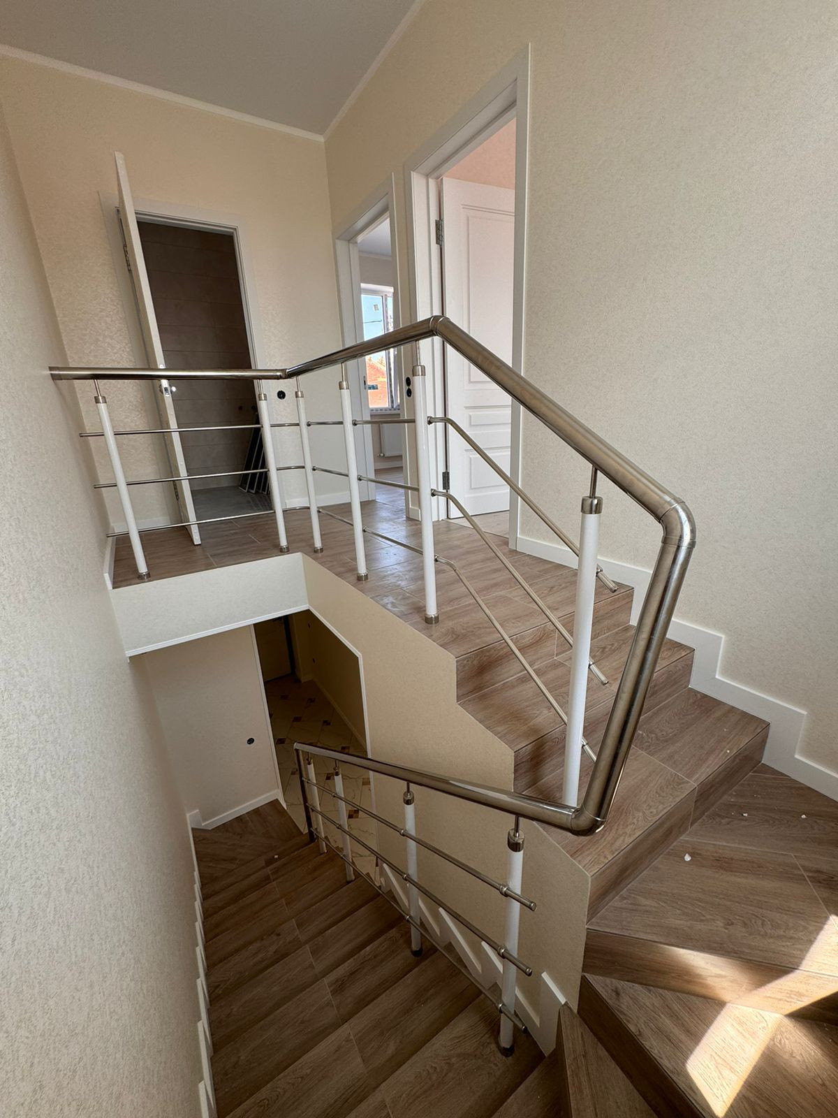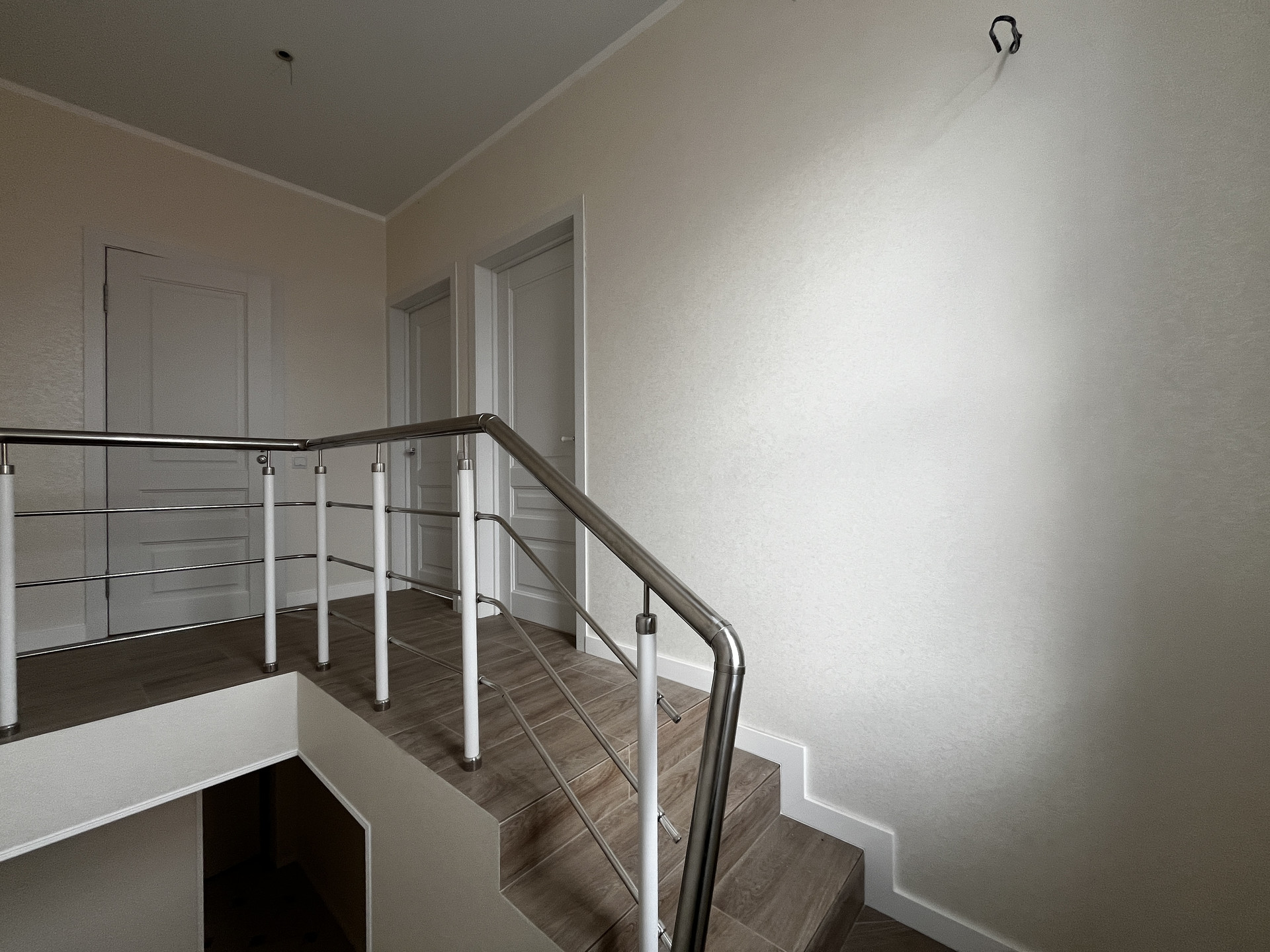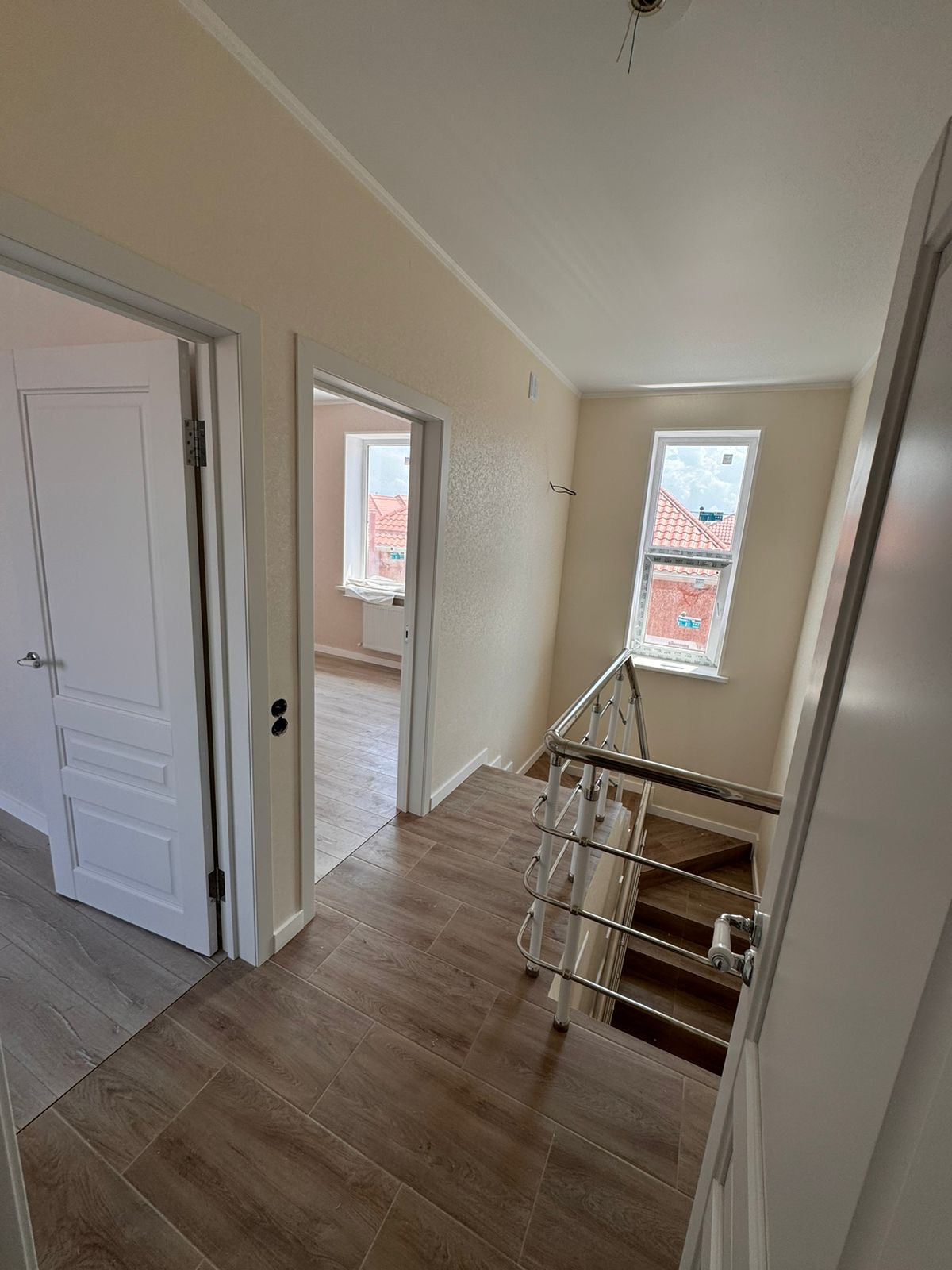 Таунхаус — в предчистовой отделке: разводка электричества, штукатурка под обои, натяжной потолок, теплый пол — на первом  этаже, газовый котел.