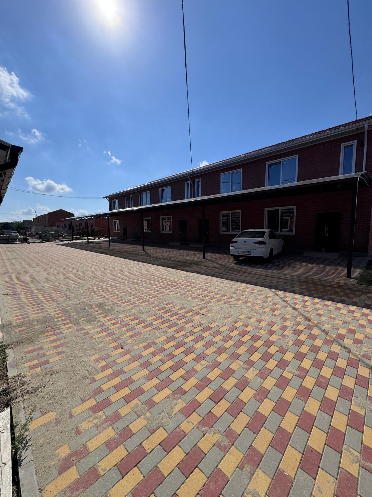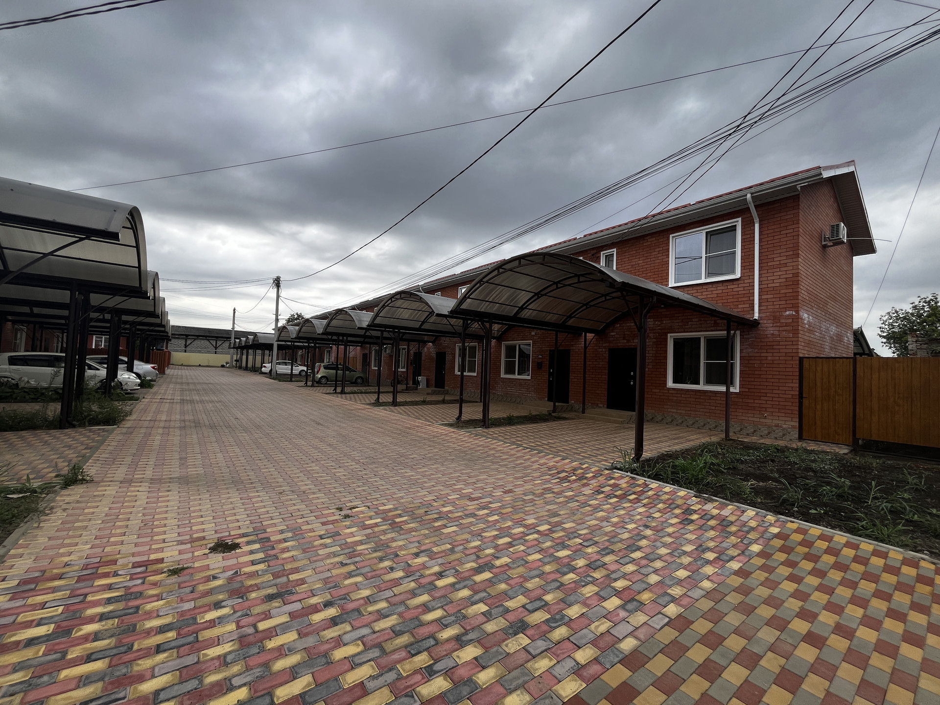 Двор выложен плиткой, закрытая территория.