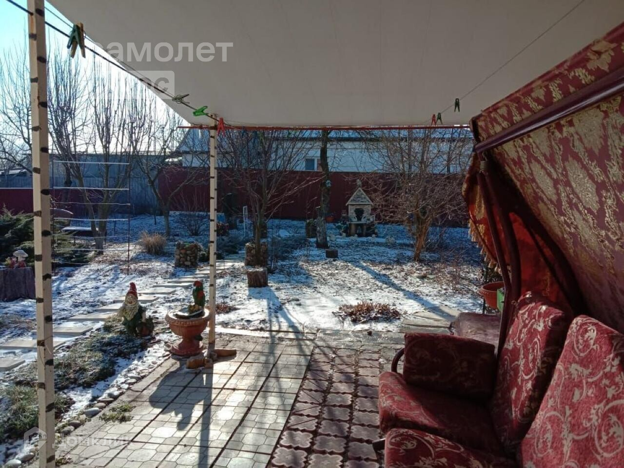 Во дворе два гаража( в одном яма для ремонта), въезд во двор для двух машин, сад с беседкой( летний душ) , колодец действующий, хозяйственные постройки, вольер с собакой, хозяйственный двор, летняя кухня с водопроводом и газом, погреб.