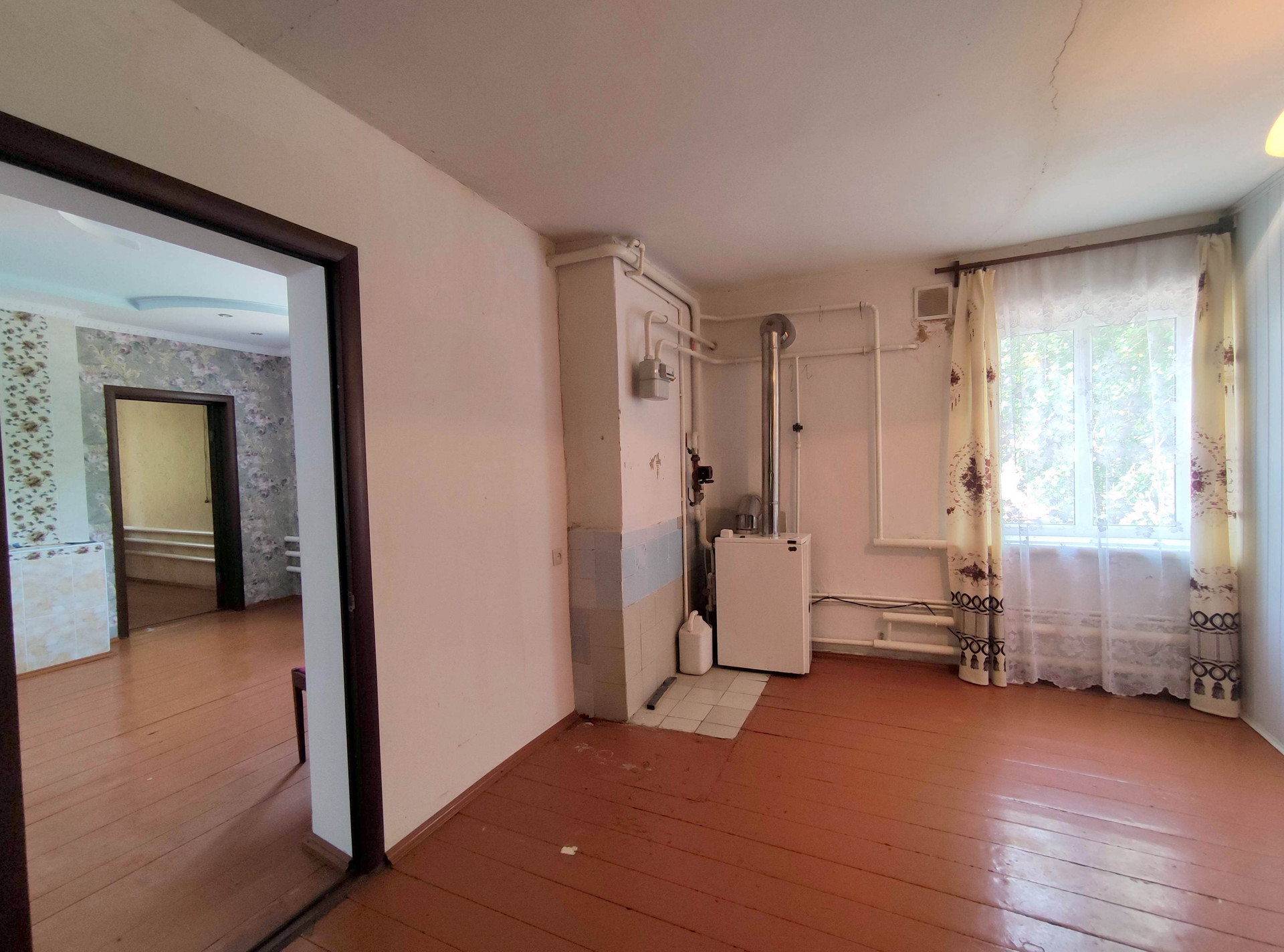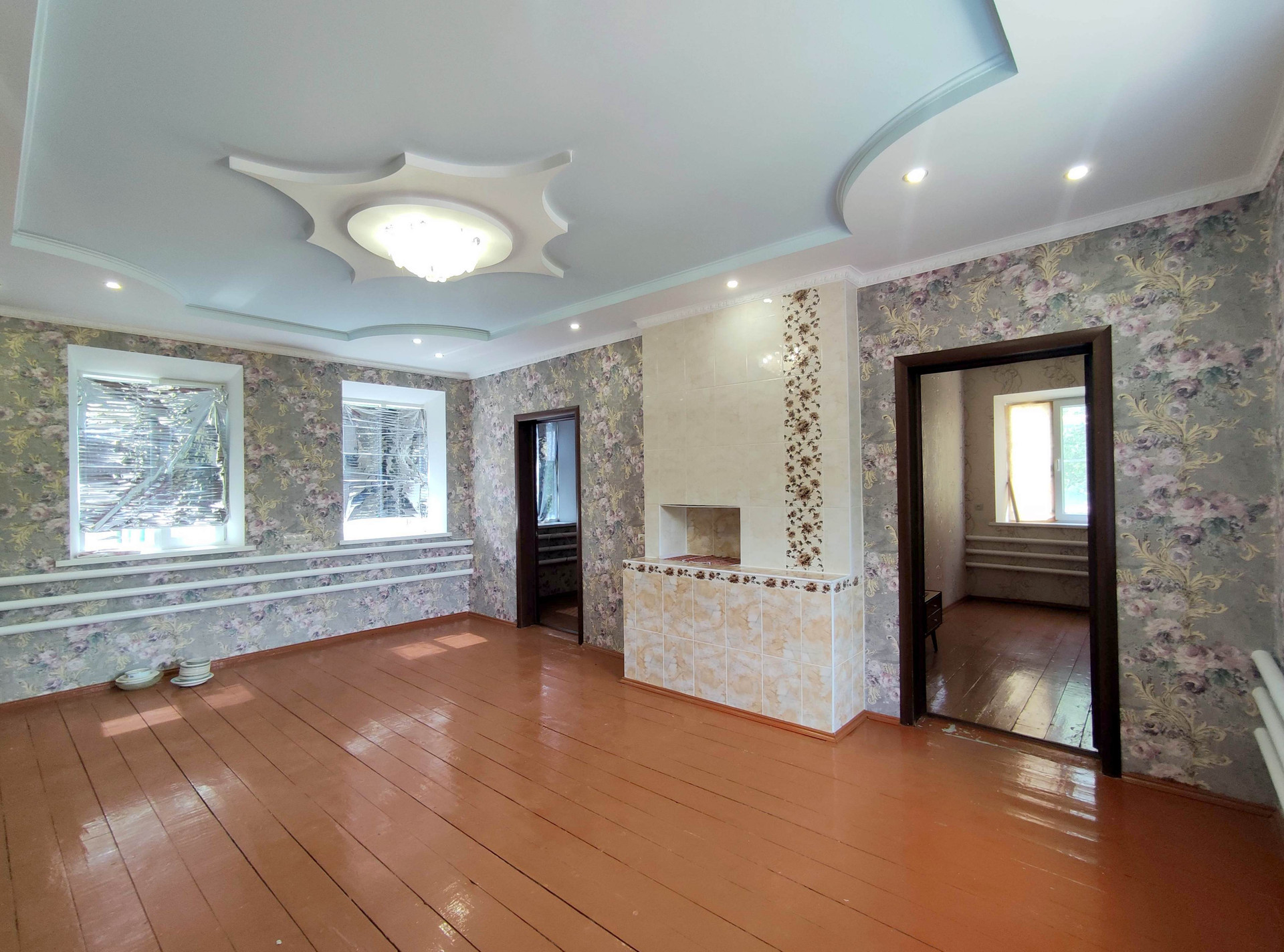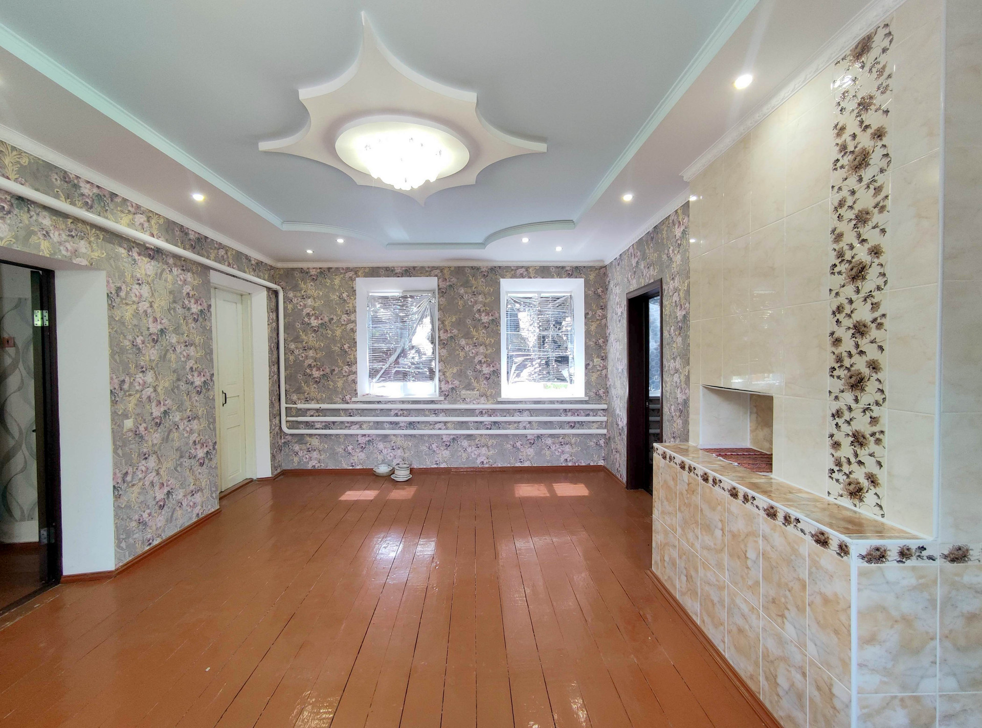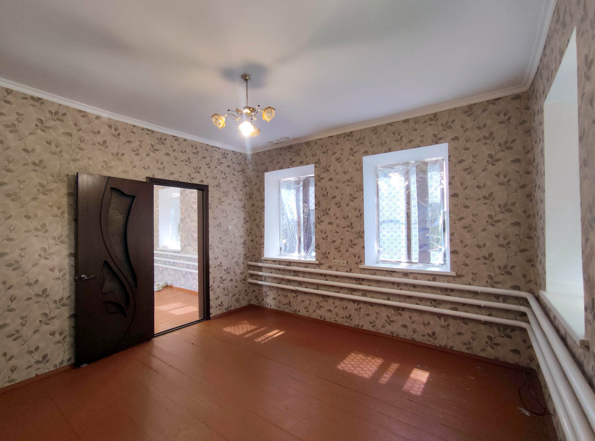 В жилой части дома выполнен качественный ремонт. В комнатах выровнены стены, оклеены обоями, потолок подшит гипсокартоном, полы из новой доски. Установлены металлопластиковые окна, в комнатах новые двери. Высота потолков 2,8 м.