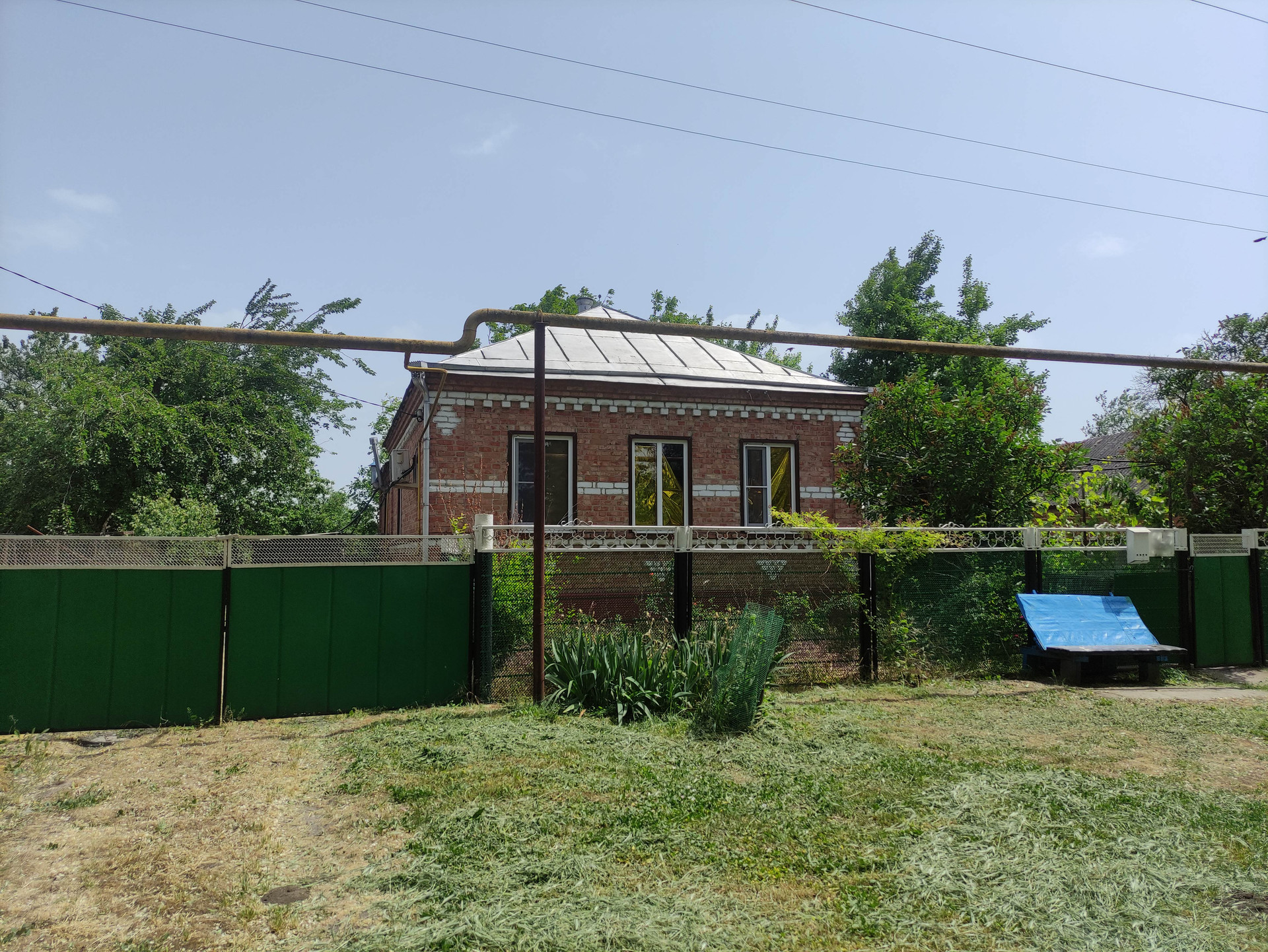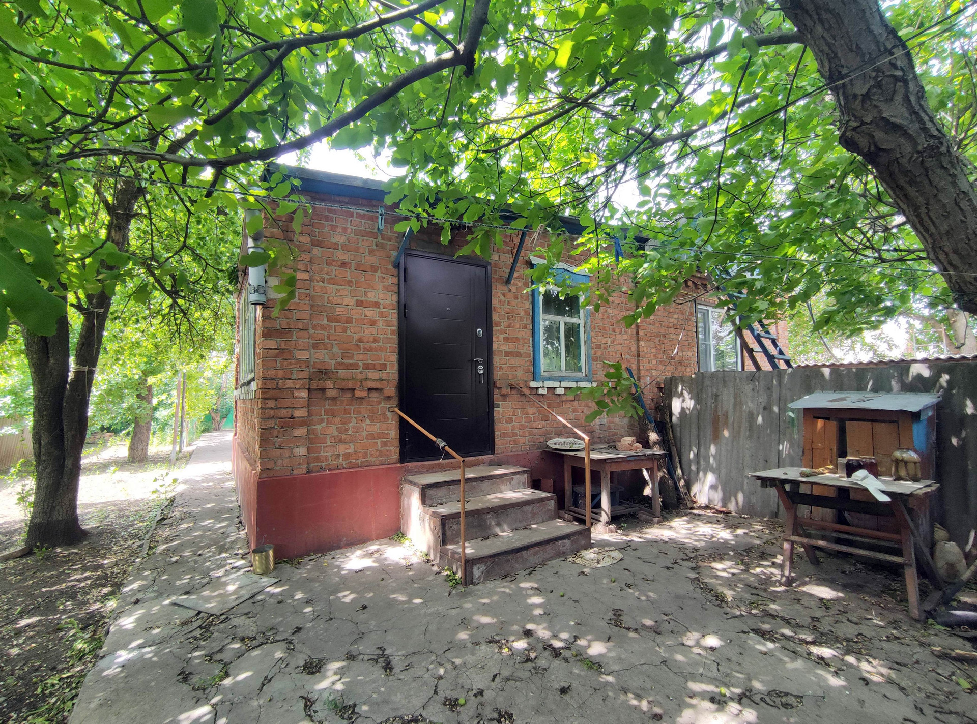 Дом полностью кирпичный. На высоком цоколе. Во дворе бетонное покрытие. Двор аккуратный ухоженный.