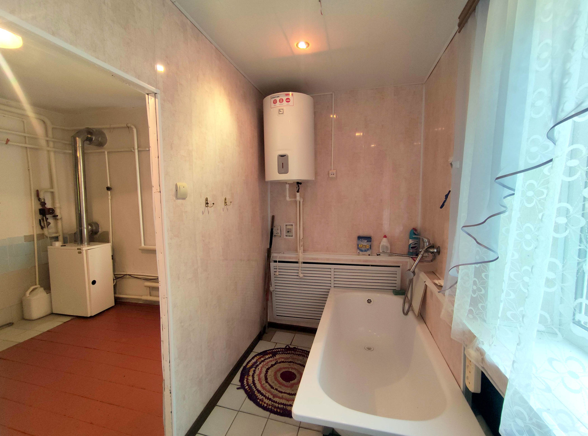 Отапливается дом с помощью газового котла, батареи чугунные трубы - тепло и экономично. Горячая вода от газовой колонки. За домом объемный септик.