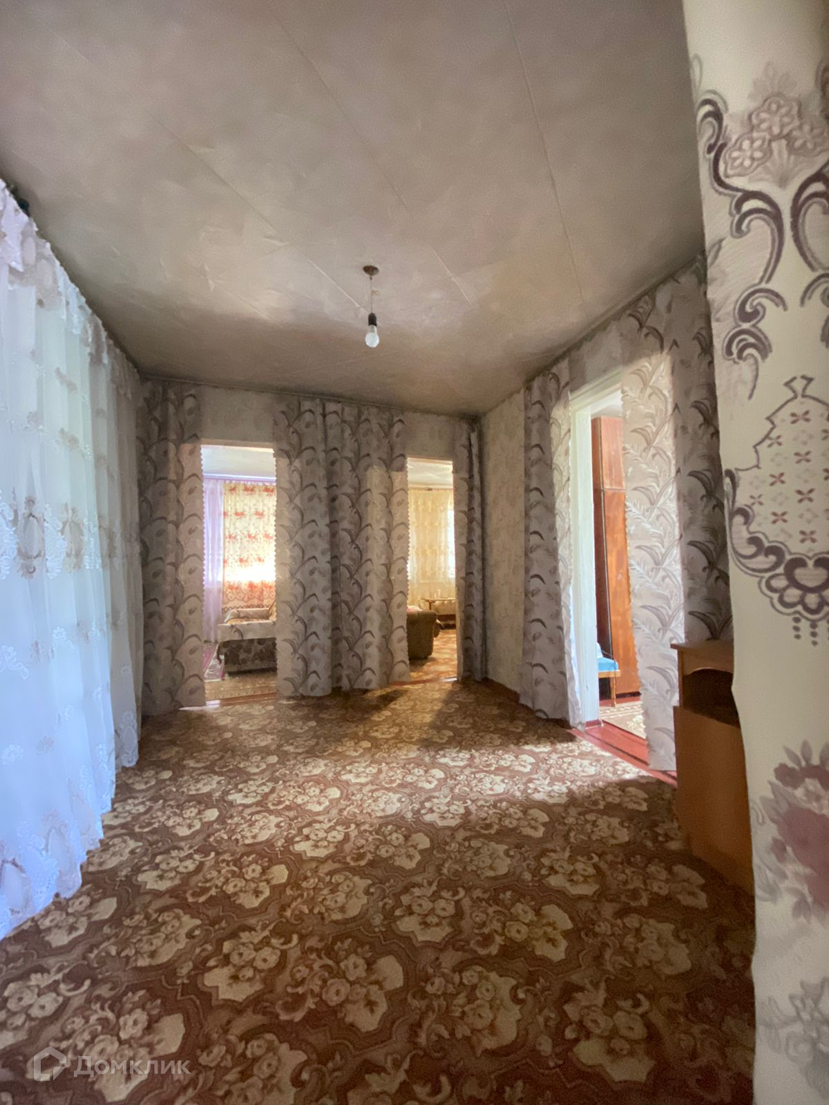 Три изолированные комнаты. Две проходные. Летняя кухня. Баня . Навес на весь двор. На заднем дворе хоз постройки. Большой огород. Есть сад.