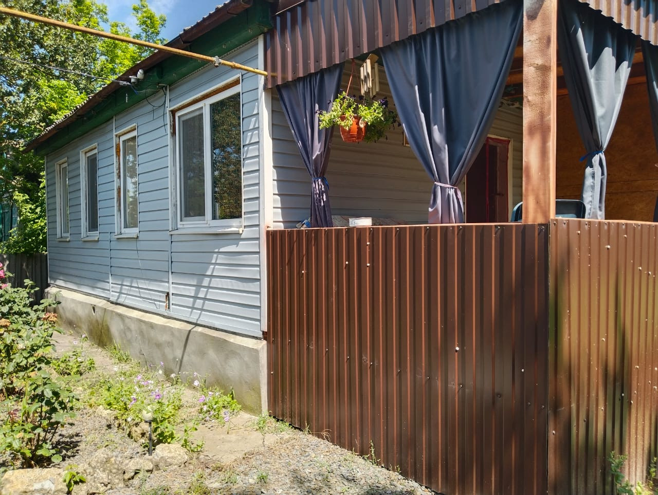 К дому на входе пристроена просторная веранда для душевных посиделок чаепития.