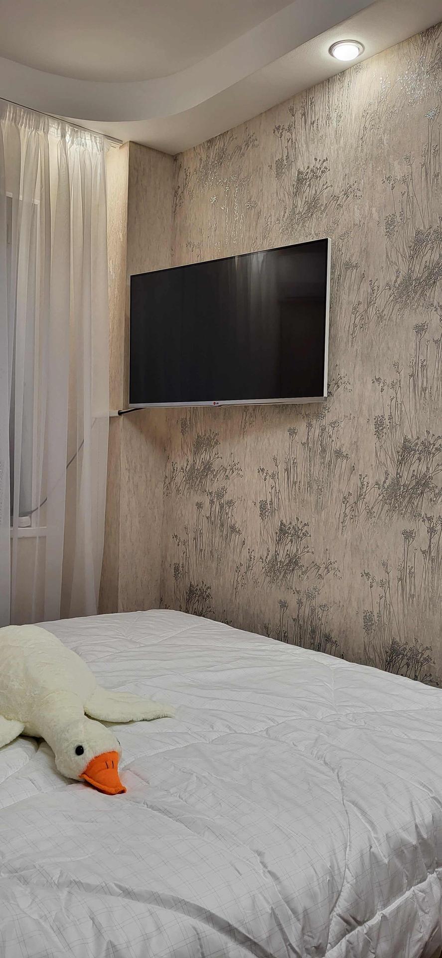 В спальне 3 месяца назад сделан ремонт, поклеены дорогие обои, новые плинтуса, новый свет.
