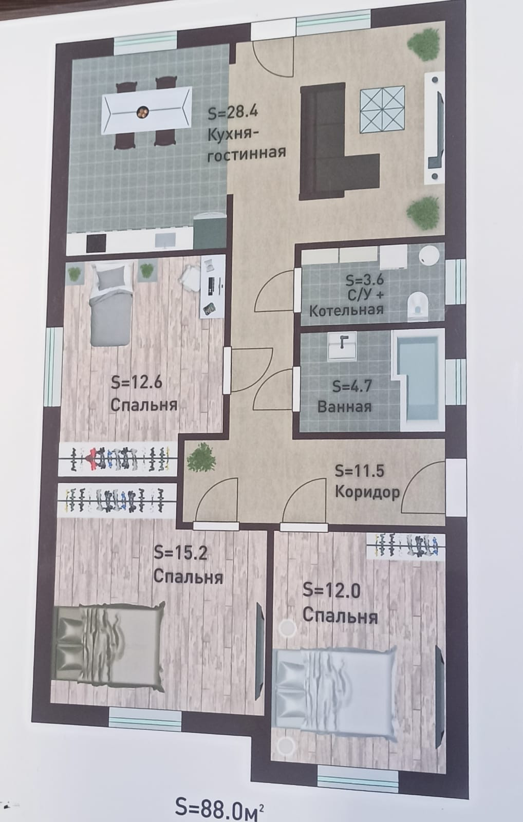 Общая площадь 88 м2