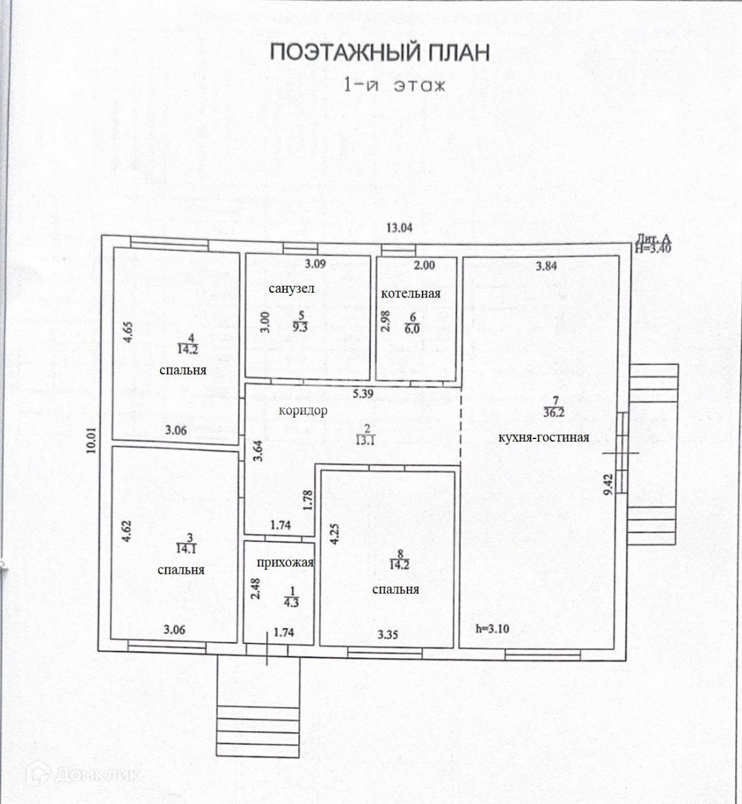 В доме три спальни, санузел, кухня-гостиная с выходом на террасу, котельная, коридор.