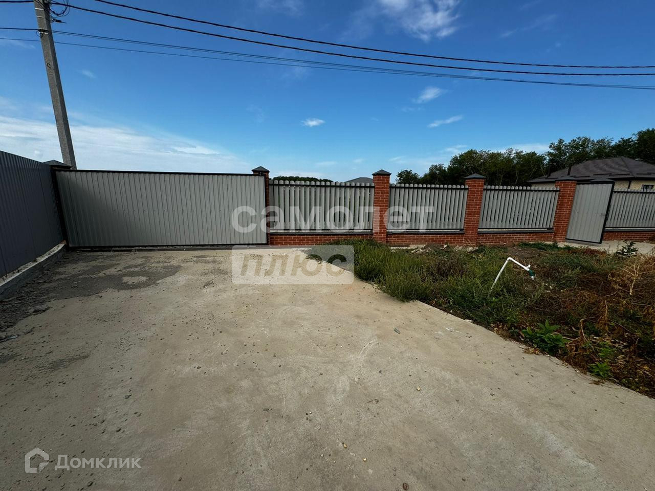 Забор из металлопрофиля на кирпичных столбах, фасадная часть- евроштакетник, откатные ворота.