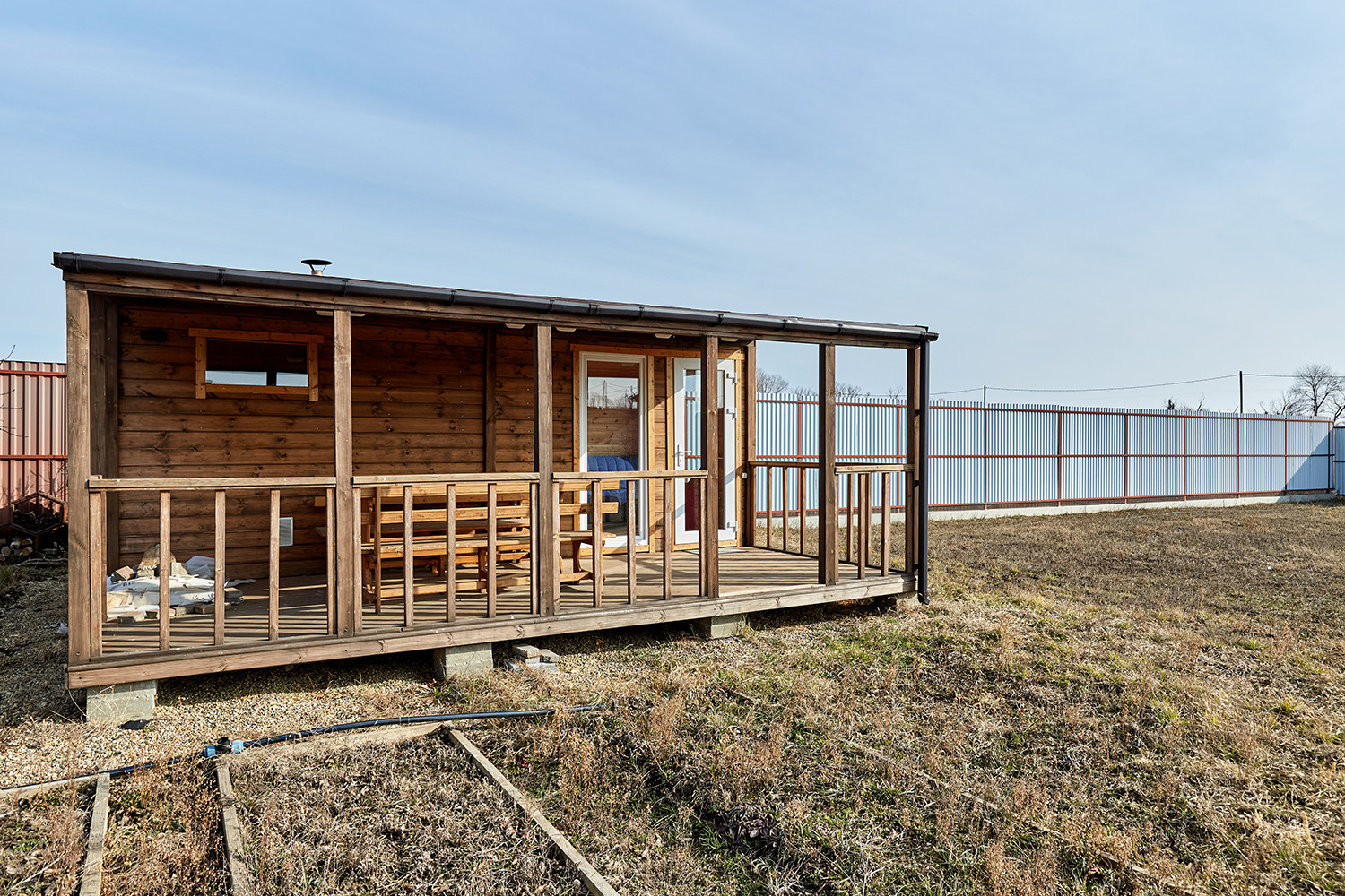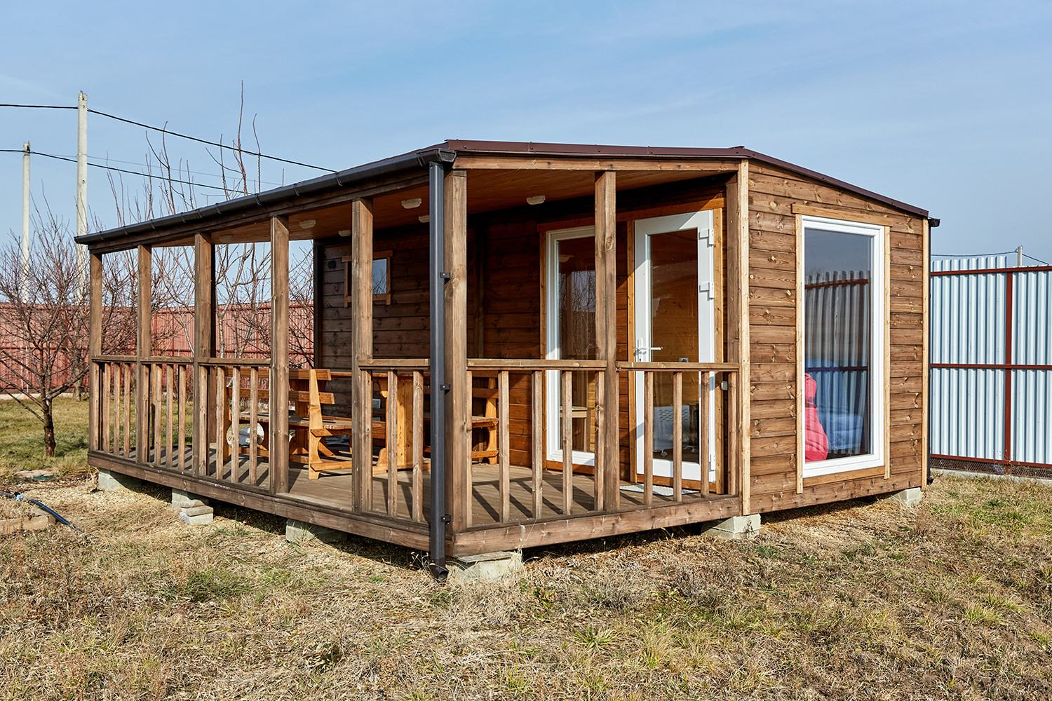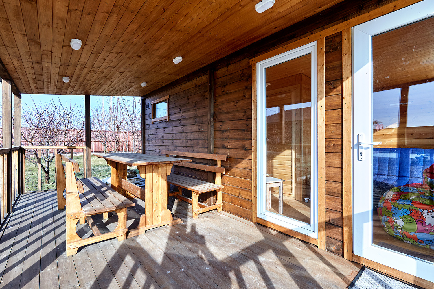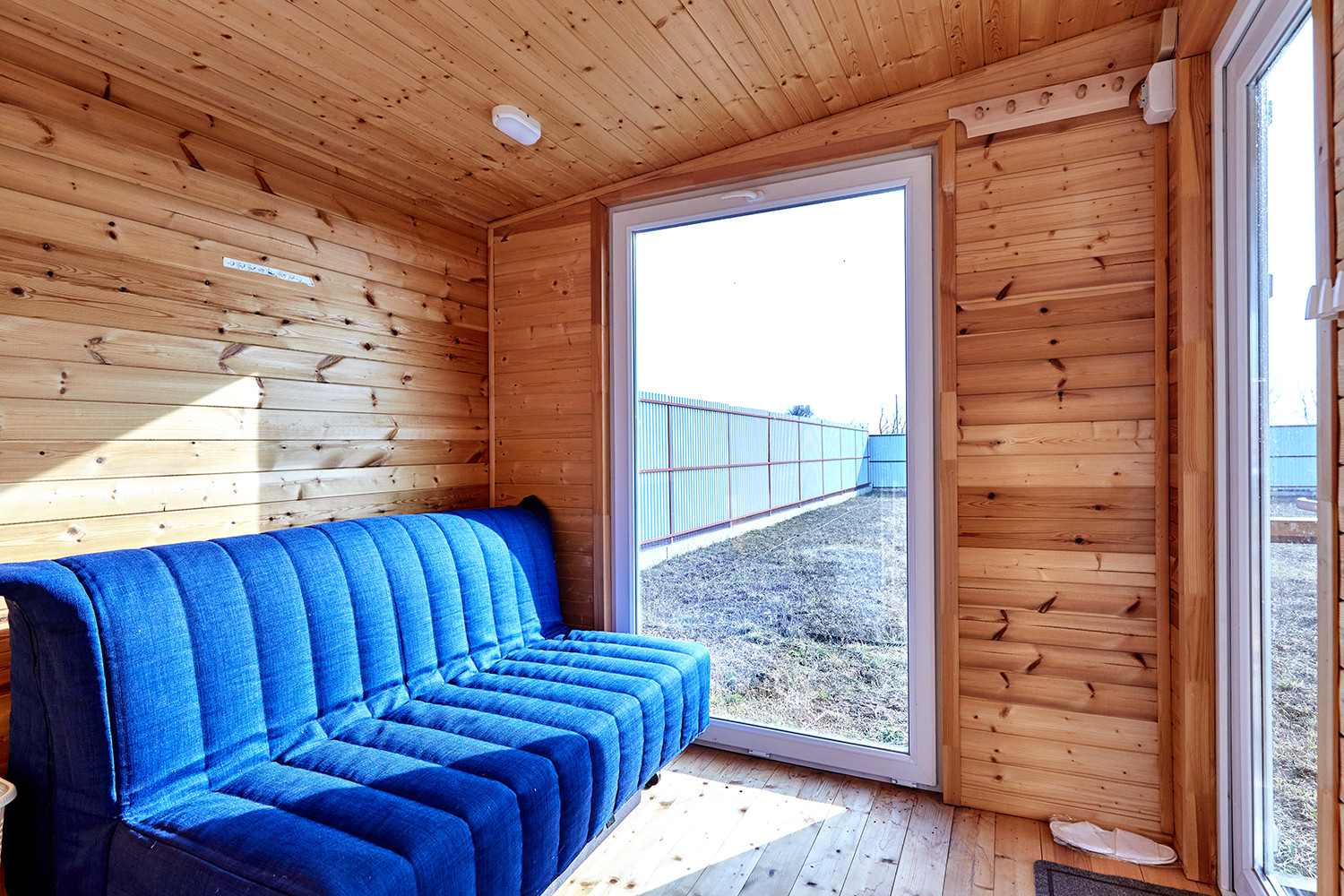 Дом с террасой, состоит из комнаты, санузла, остекленной веранды с кухонным гарнитуром. В комнате: диван, двухуровневые детские кровати, телевизор. Все новое, никто не жил.