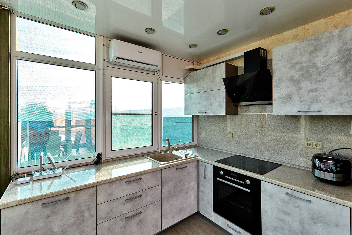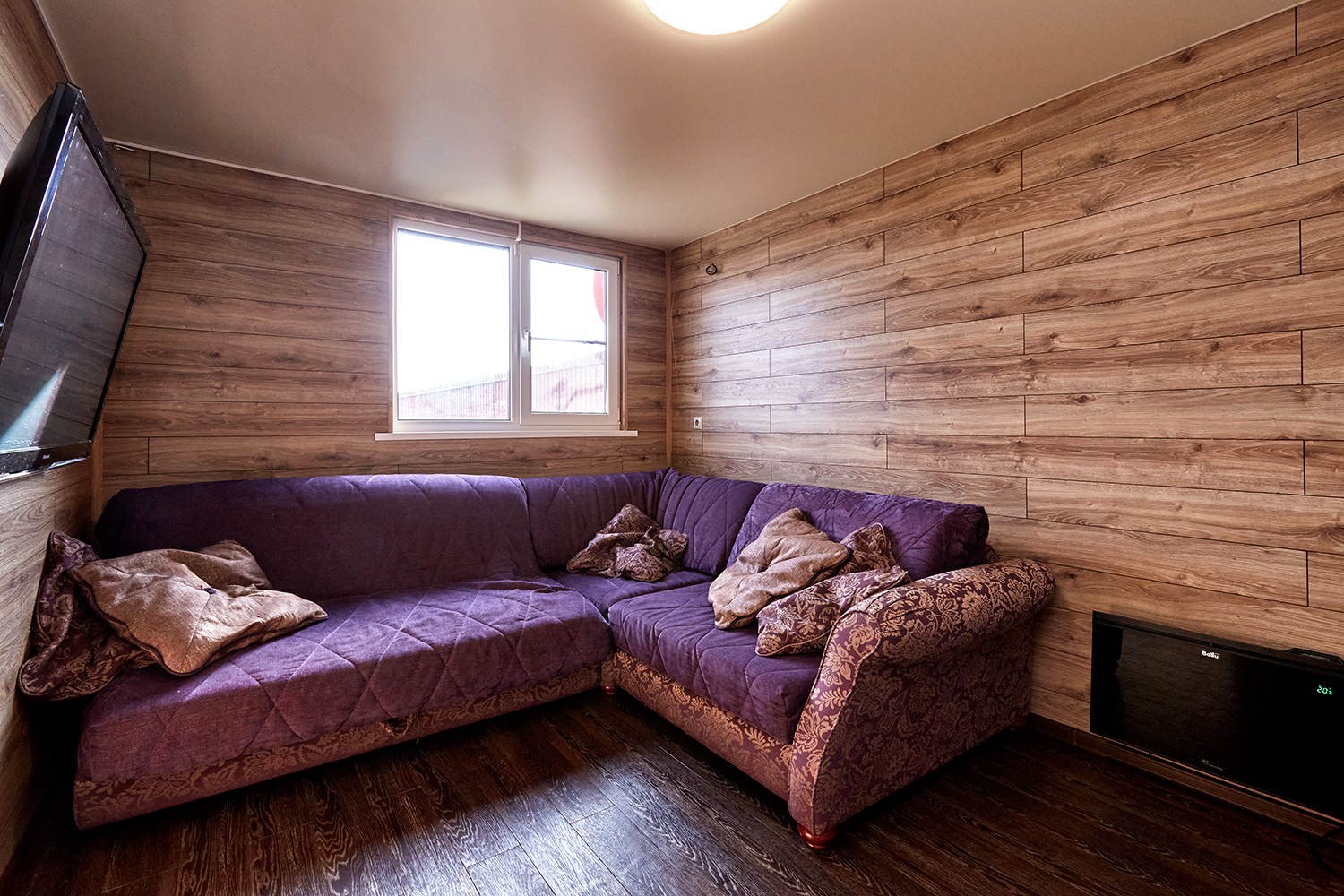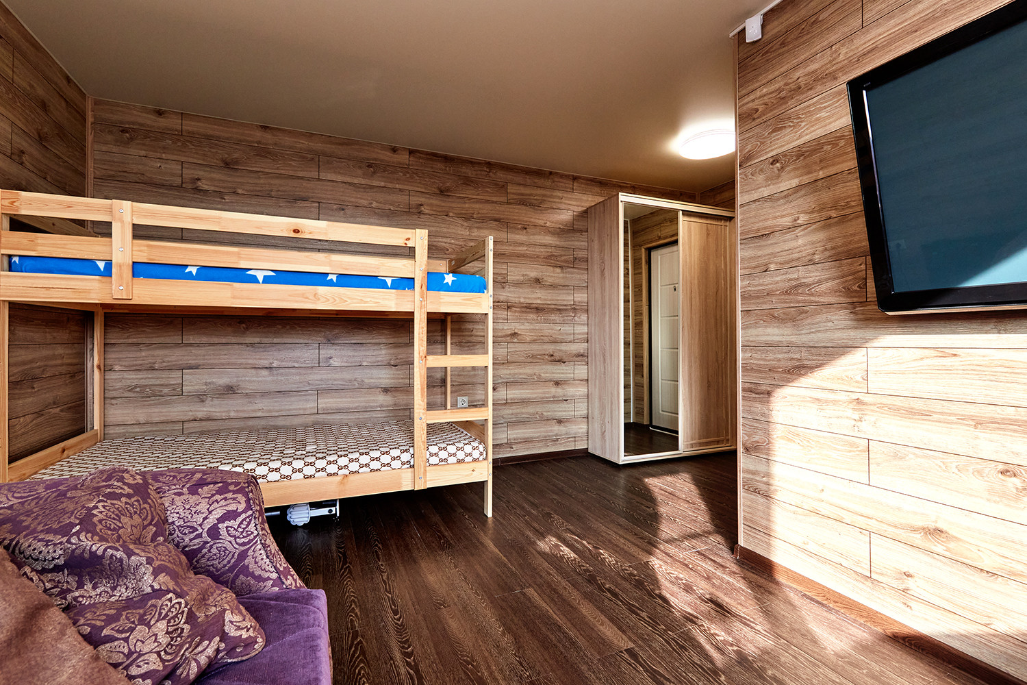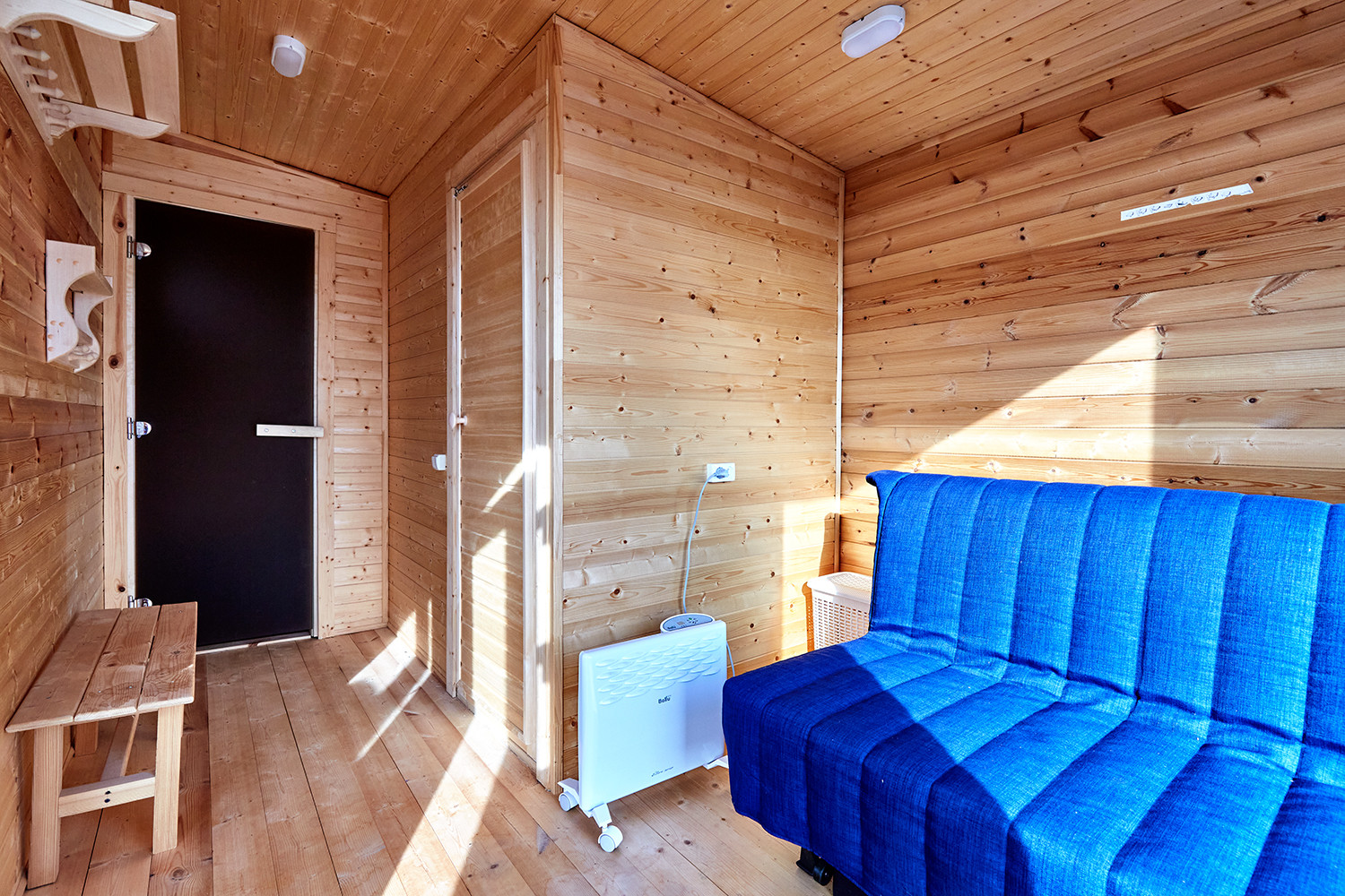 Дом с террасой, состоит из комнаты, санузла, остекленной веранды с кухонным гарнитуром. В комнате: диван, двухуровневые детские кровати, телевизор. Все новое, никто не жил.