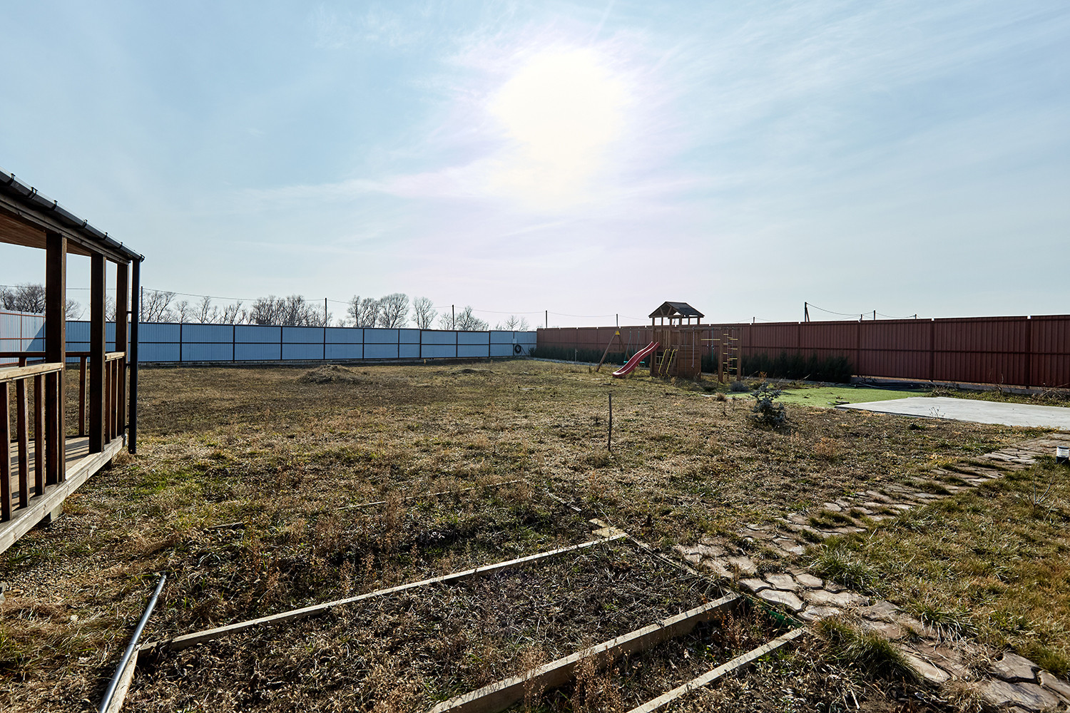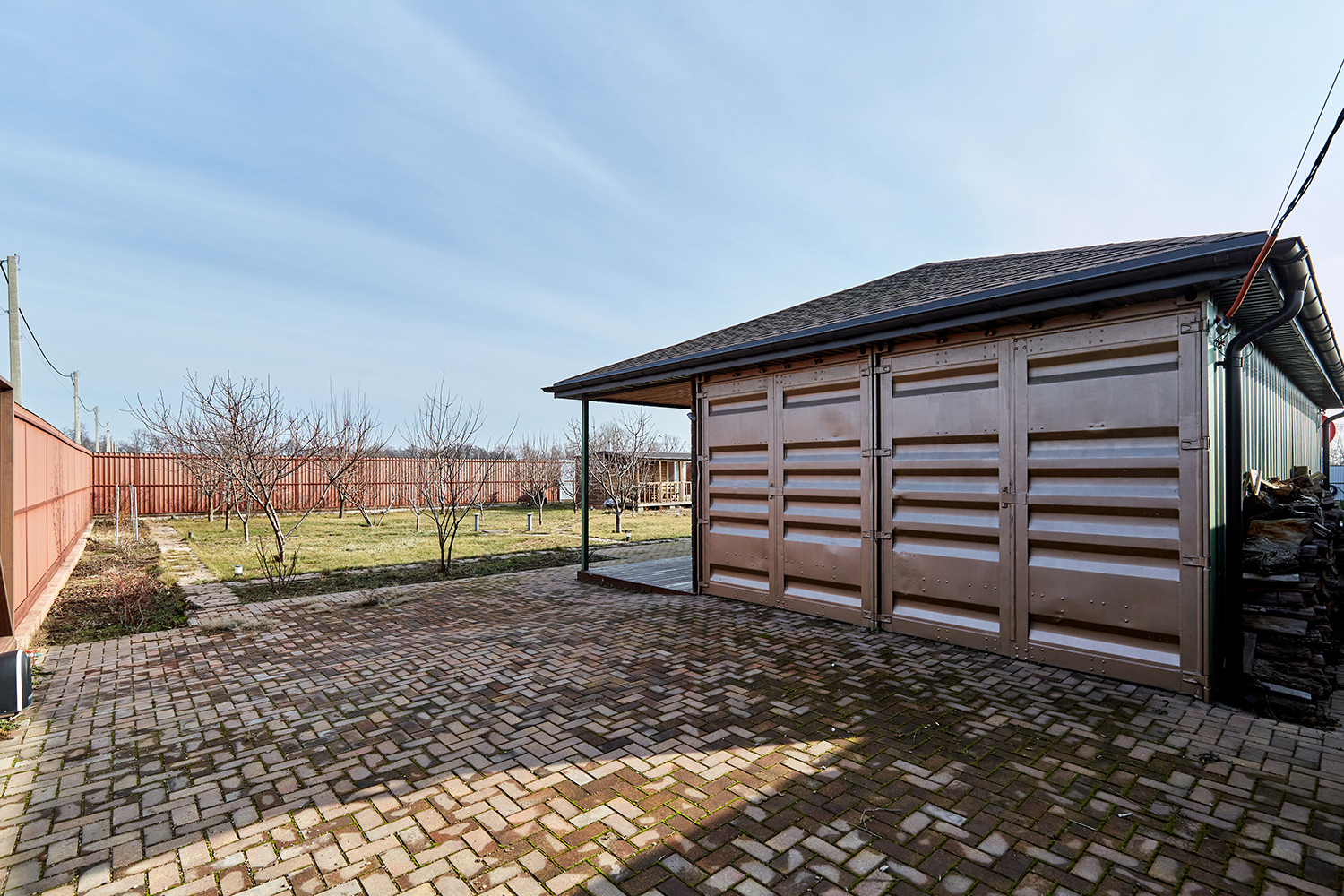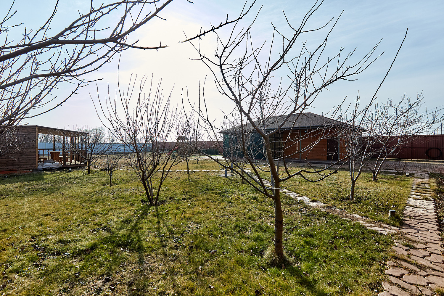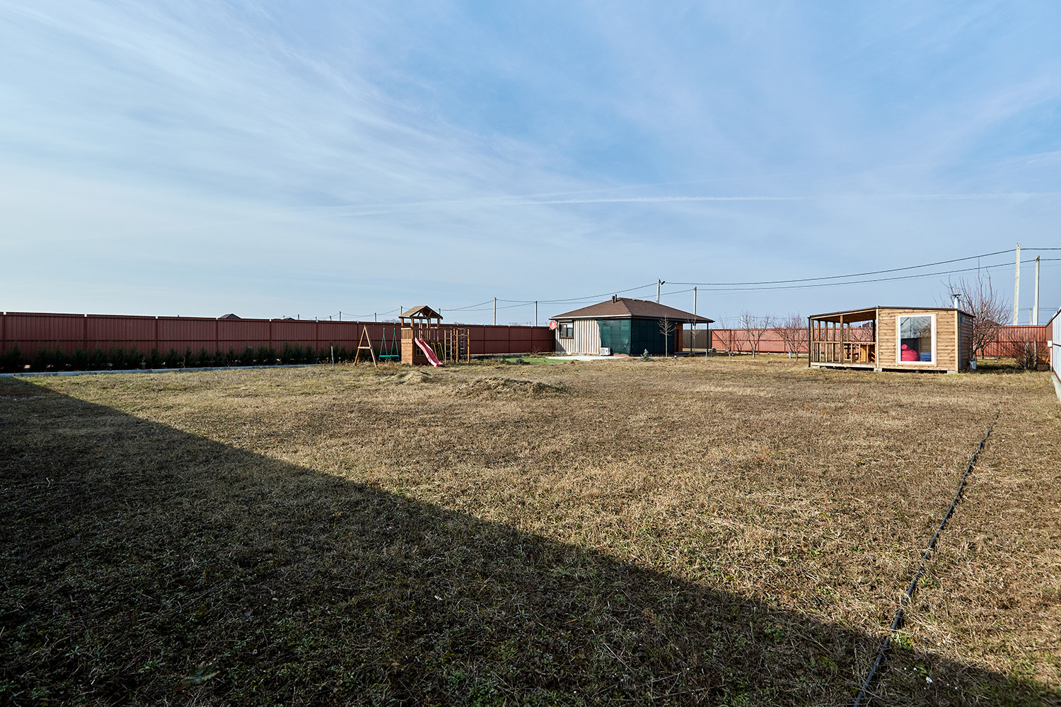 Участок правильной формы с большим фасадом 30 метров и площадью 15,4 сотки обнесен металлическим забором на фундаменте. На участке: дом с гаражом на две машины, баня с террасой, детская площадка. На участке разбит сад с плодоносящими фруктовыми деревьями и ягодными кустами, а также клены, ель. Участок под круглосуточной охраной. Проведены интернет, видеонаблюдение, спутниковое телевидение  для безопасного и комфортного проживания.