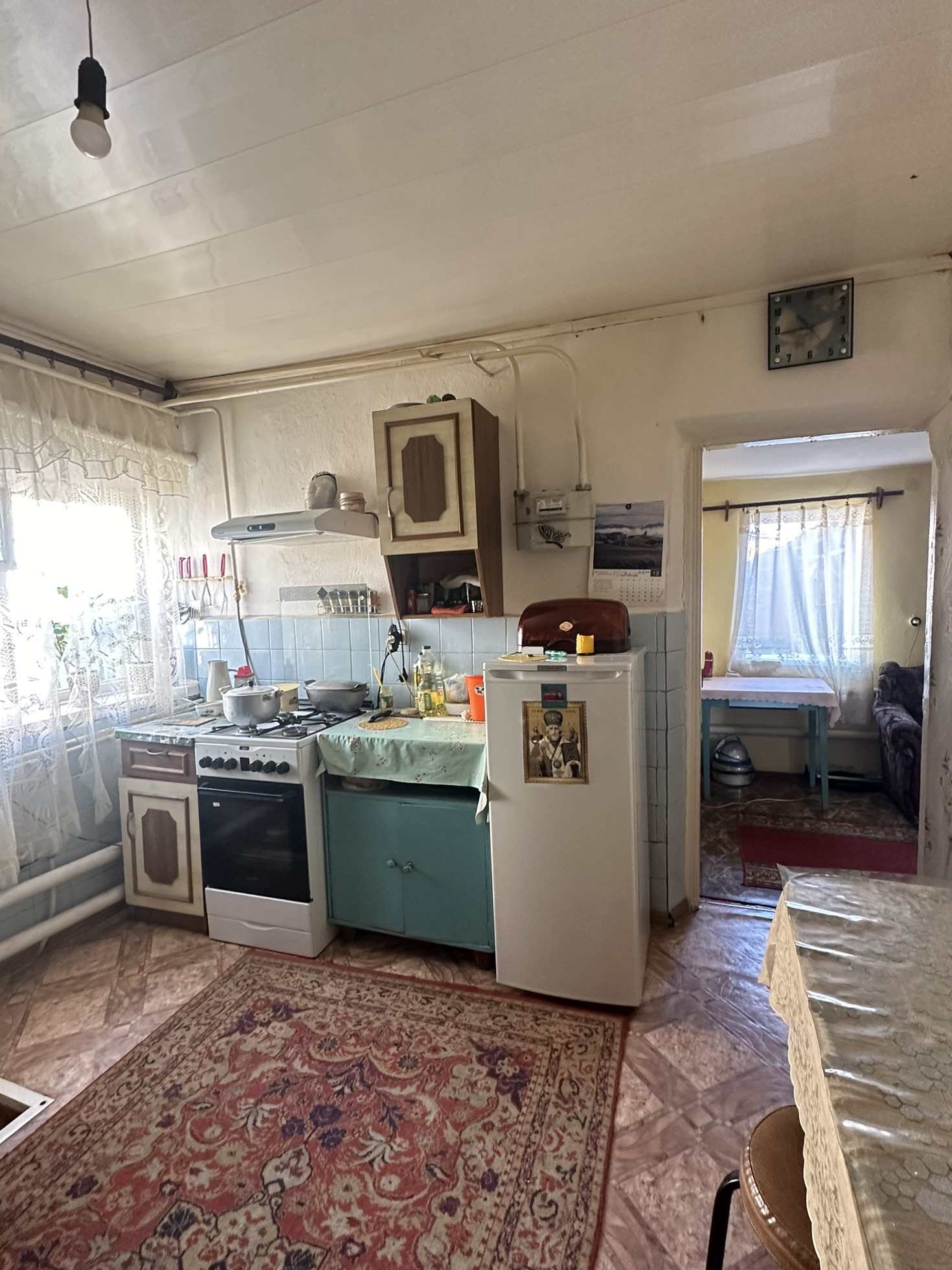 В доме 4 жилых комнаты,кухня,сан.узел.Присутствуют все коммуникации:газ,свет,вода.В доме частично остается мебель.