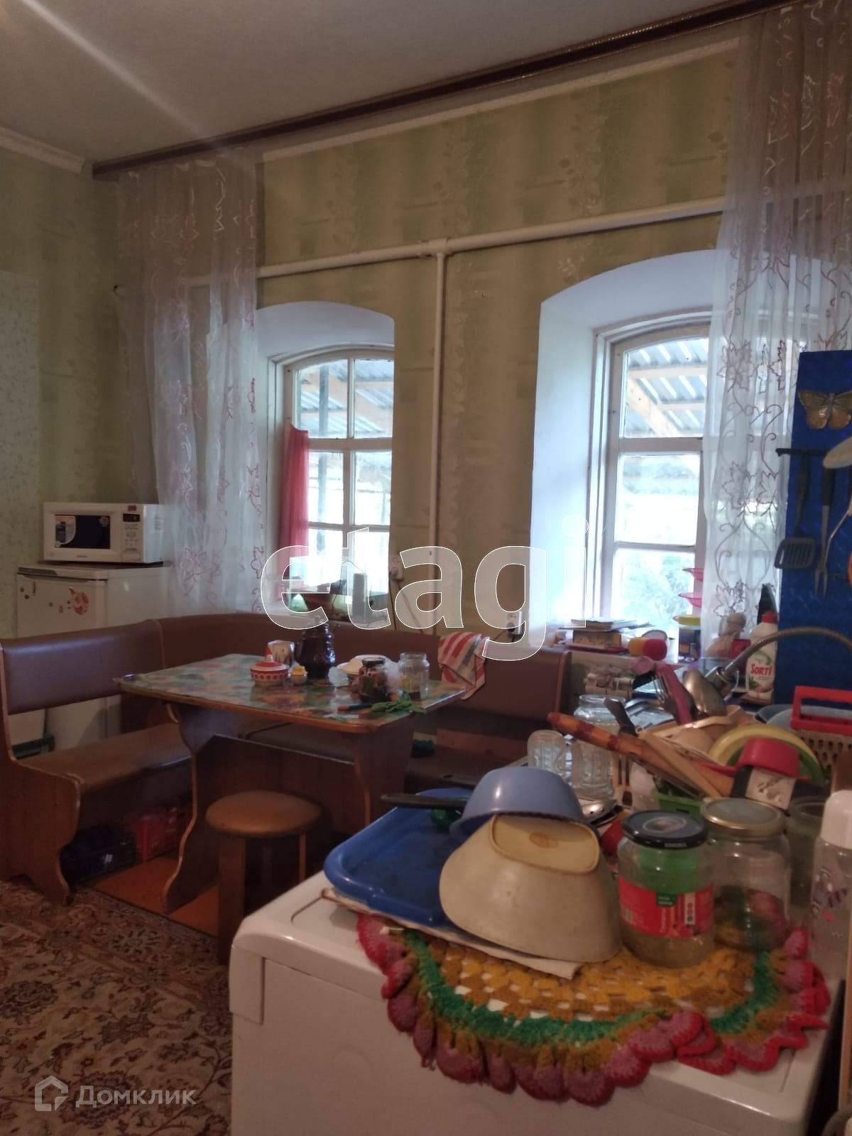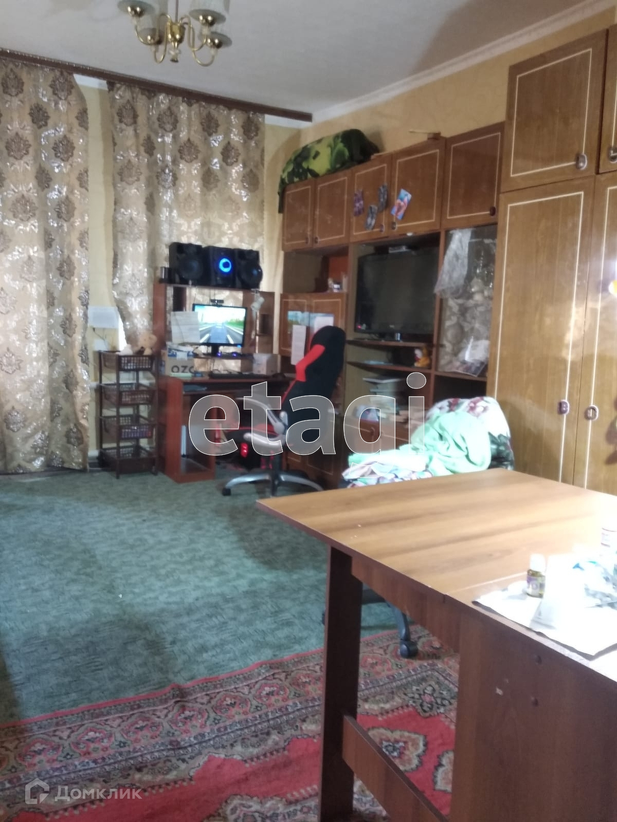 Общая площадь дома - 74 кв.м, жилая - 58,6 кв.м, кухня - 10,2 кв.м. В доме три жилые, смежно-изолированные комнаты, совмещенный санузел. Материал стен: саман, облицованный деревом, крыша - шифер. Водоснабжение центральное, канализация септик. При продаже в доме остаются диван, кухонный гарнитур.