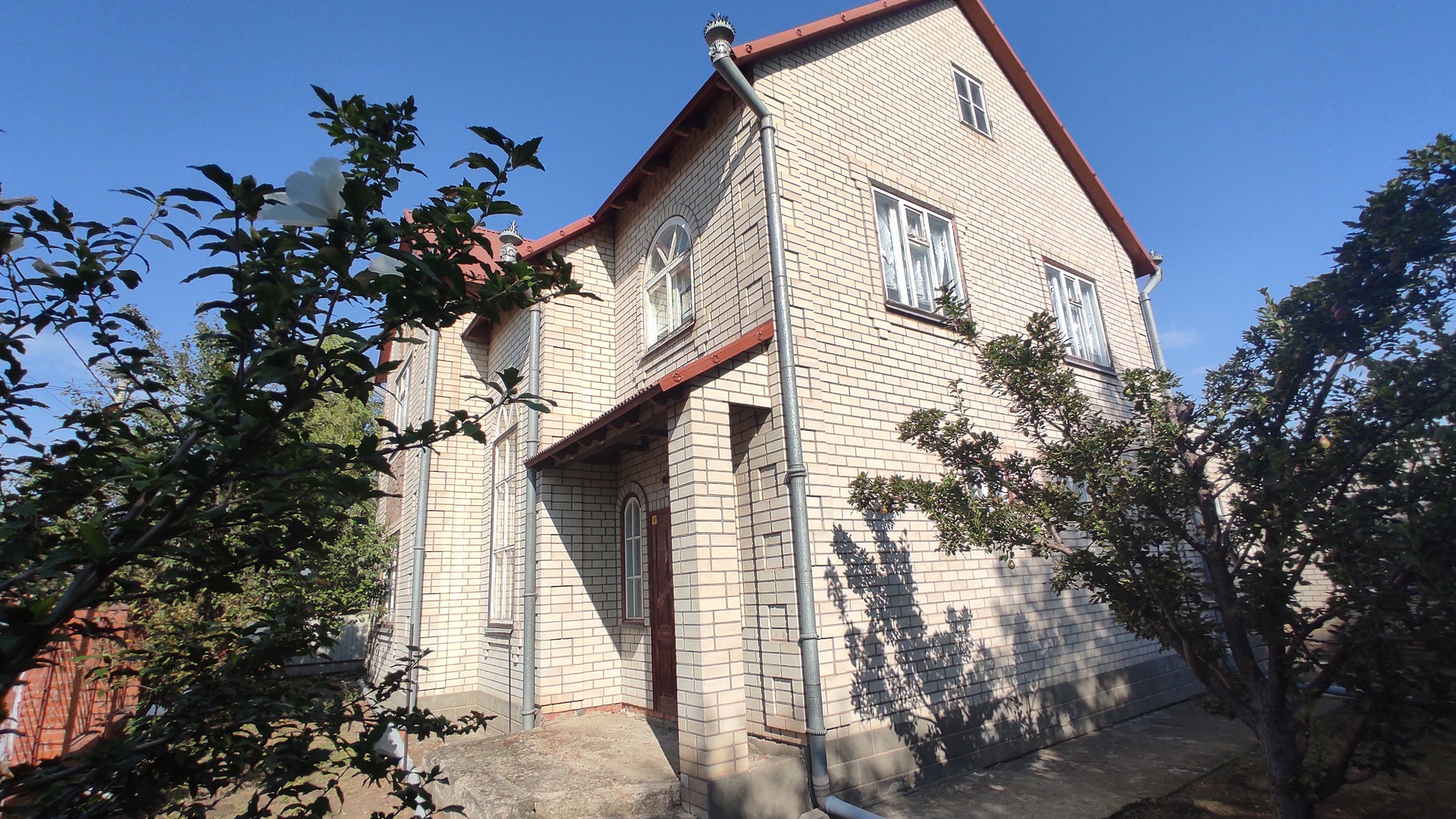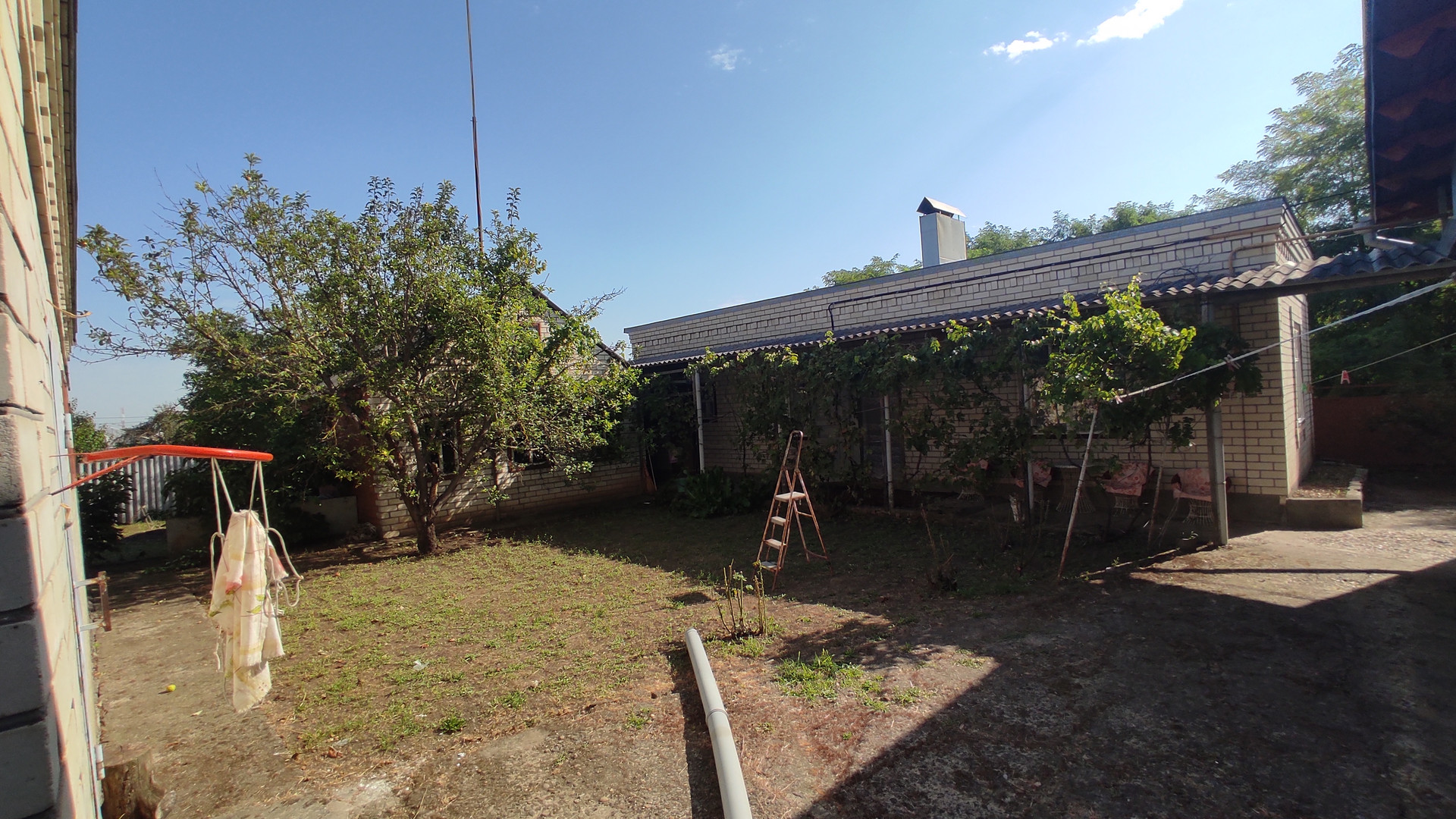Участок 9 соток, шириной 21 метр, отмежеван. Во дворе расположена просторная отапливаемая летняя кухня, кирпичный гараж на две машины, хозяйственные постройки. Дорожки забетонированы.На участке месть плодовые деревья, виноград и небольшое место под огород или сад.