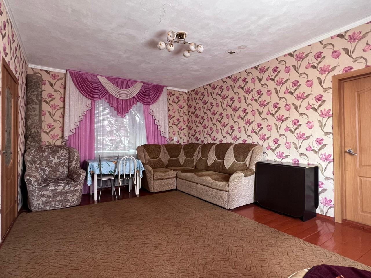 Дом просторный, светлый и теплый,  две изолированных спальни, удобная кухня. Отопление - газ, водопровод, электричество, канализация. На участке расположен гараж и хоз. постройки и огород с фруктовыми деревьями. Дом находиться на асфальтированной и освещенной улице. В шаговой доступности магазины, детский сад, СДК. Все документы в порядке. Реальному покупателю торг.