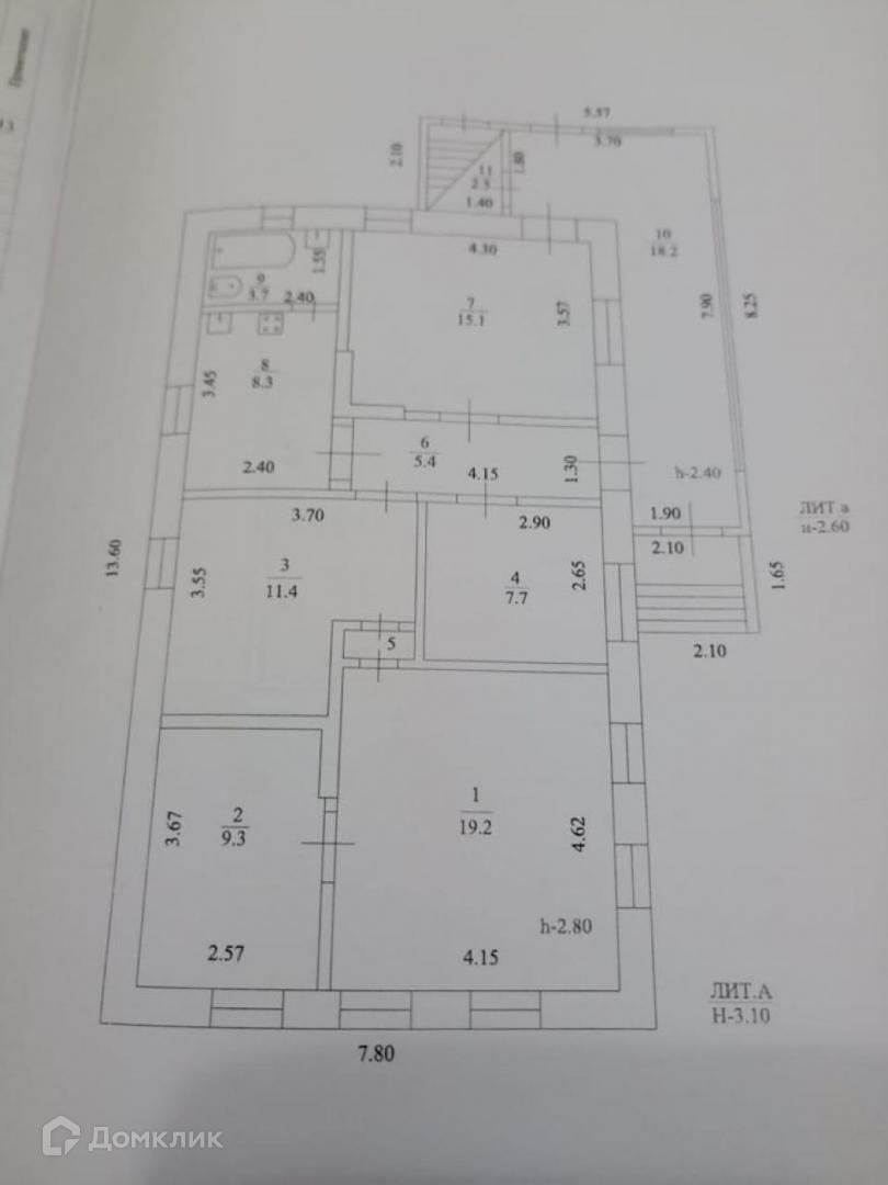 5 комнат, кухня, коридор, с.у — ванна и туалет. Газовое отопление, горячая и холодная вода.