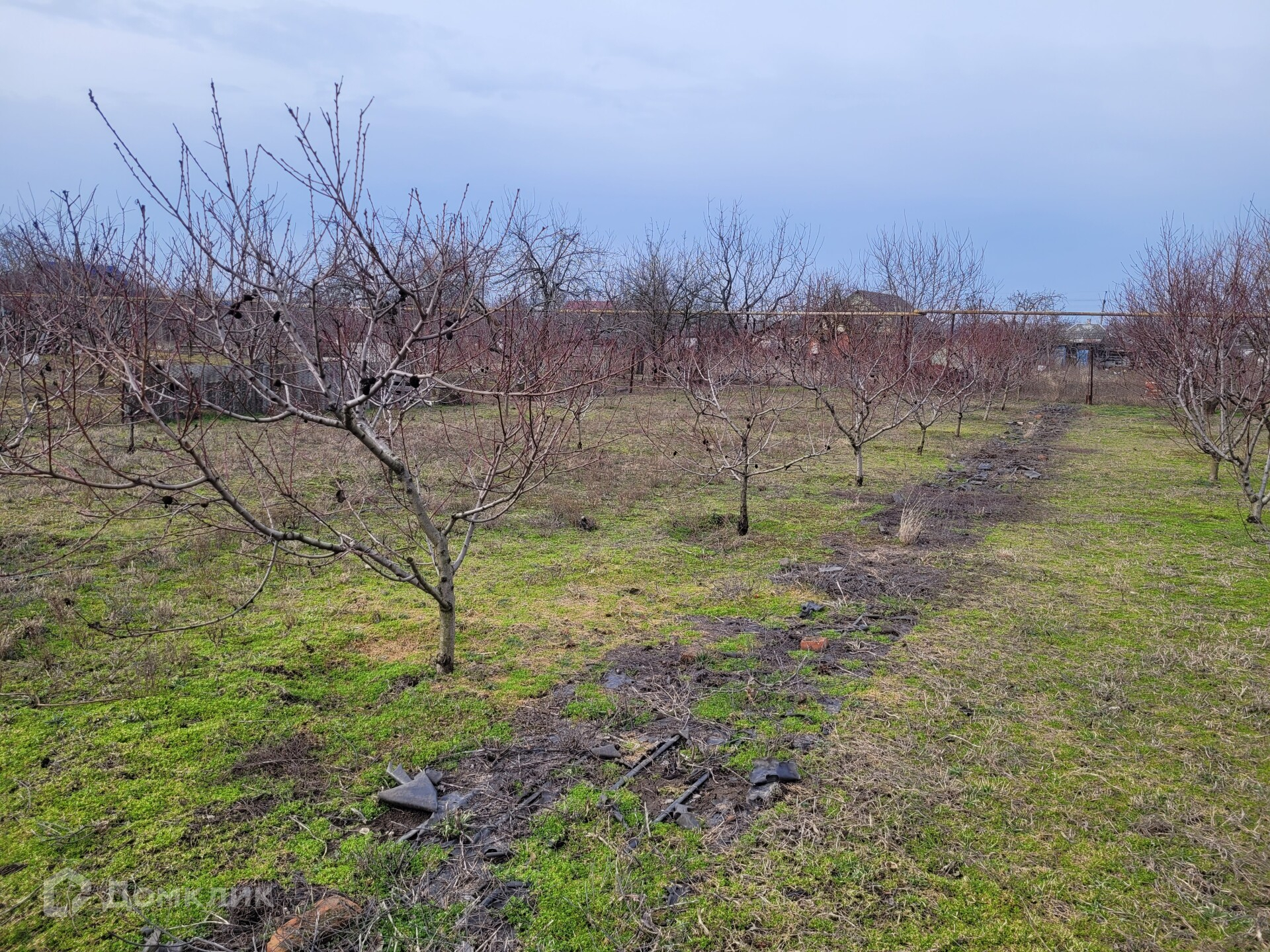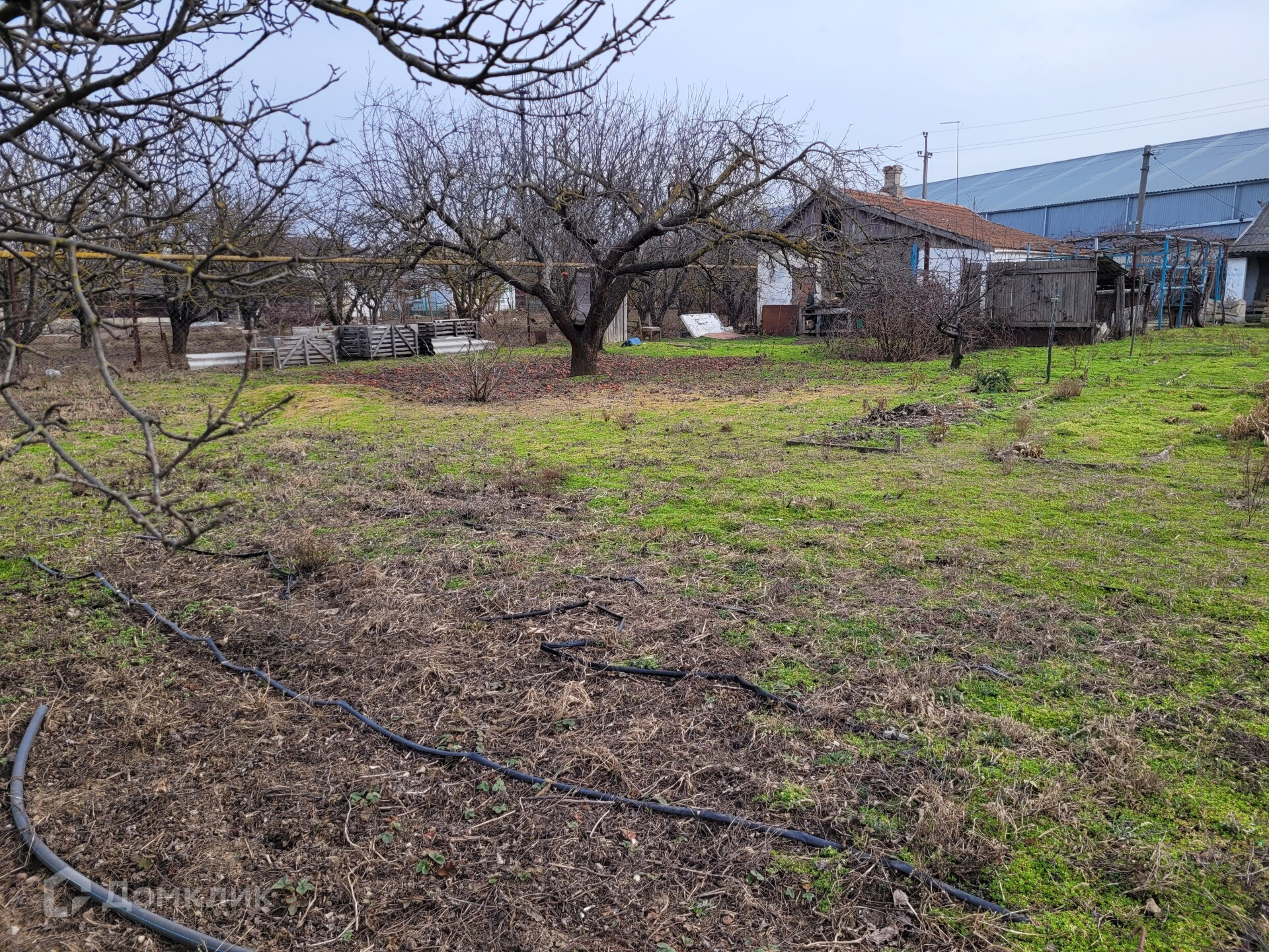 Участок большой. На участке расположены: гараж,  хоз. постройки, скважина, множество плодовых насаждений (груши, яблоки, малина, клубника, ежевика, персики, черешня, вишня и мн. др.).