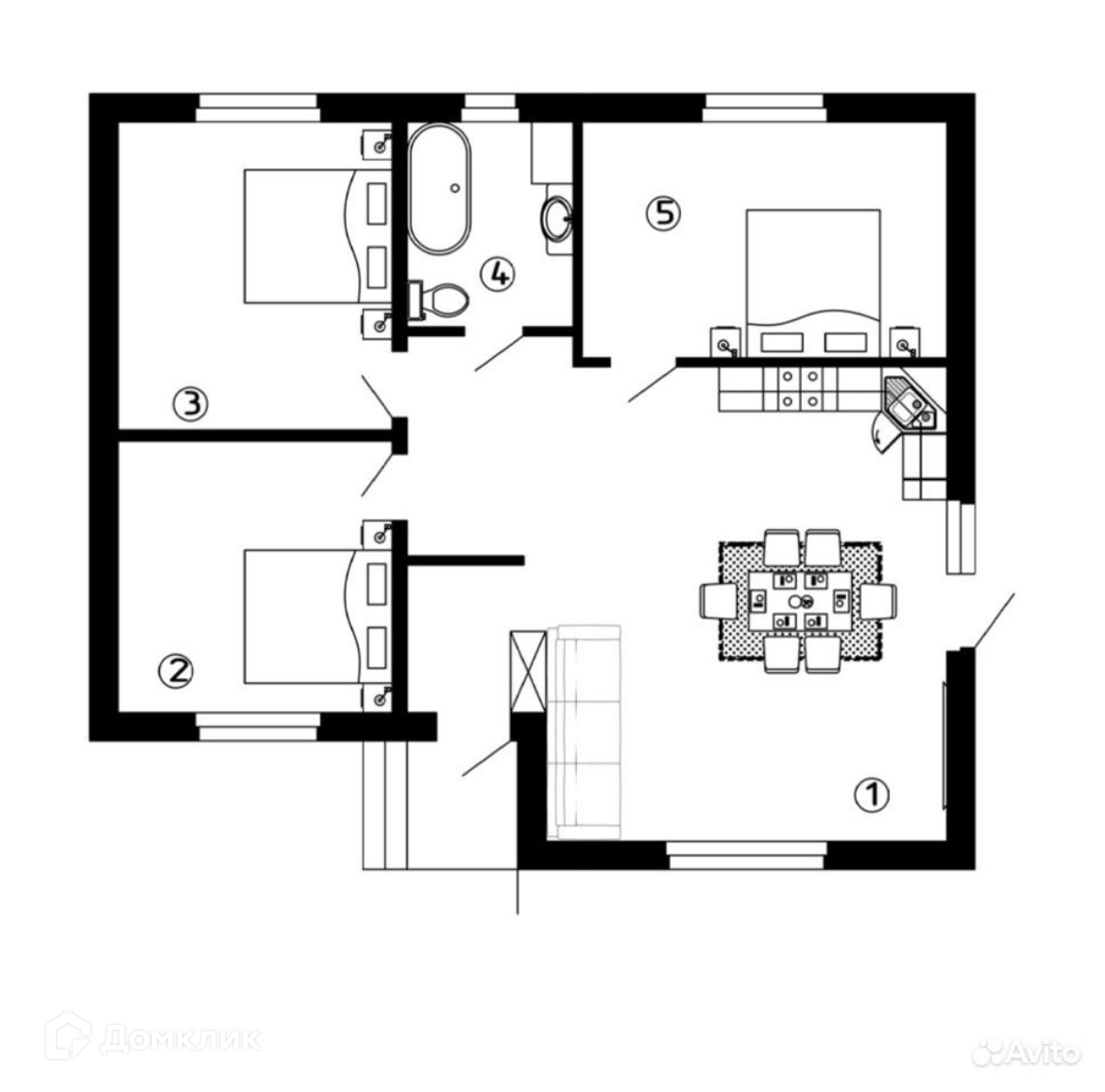 3 спальни + зал/кухня с выходом на веранду