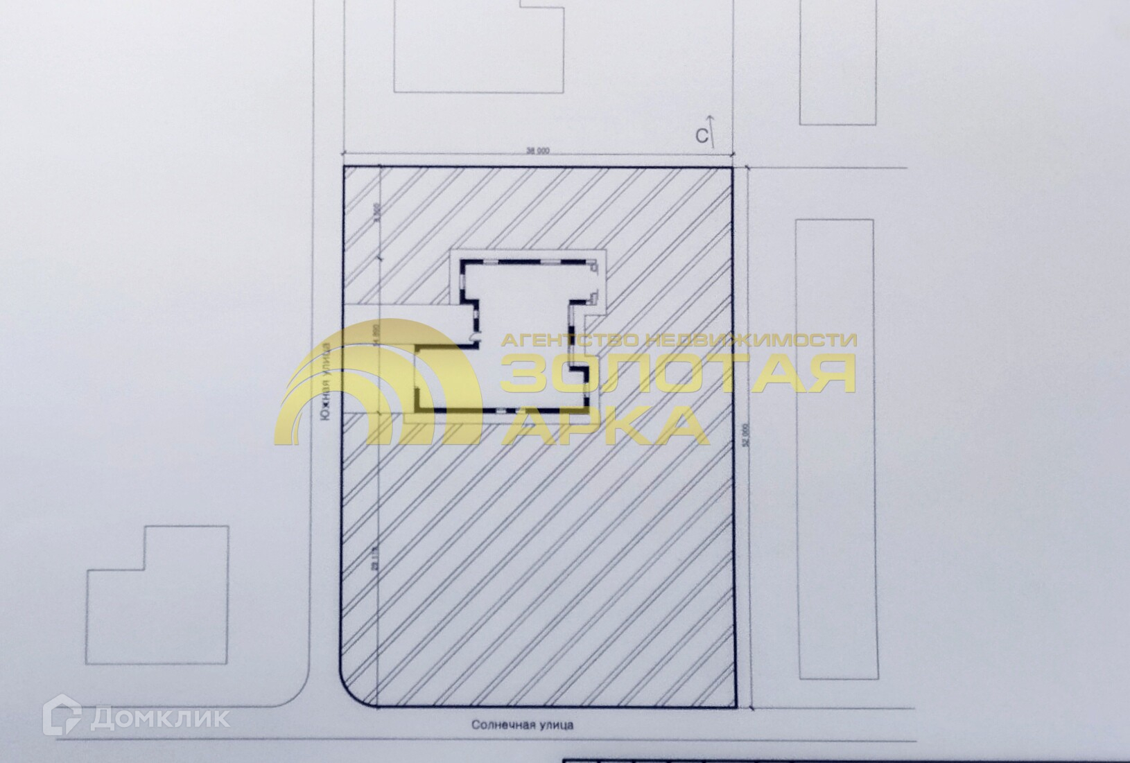 Фасад 52 метров, в глубину - 38 метра.