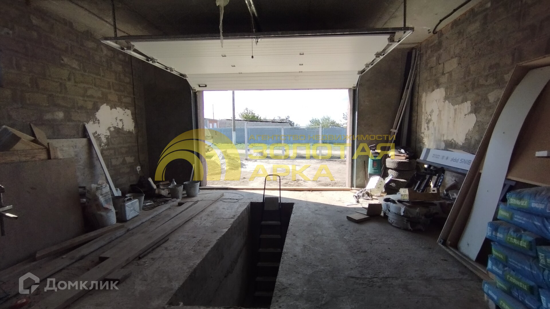 Гараж оснащен смотровой ямой, в которой расположен погреб, имеет автоматические роллетные ворота, высота потолка 3 метра.
