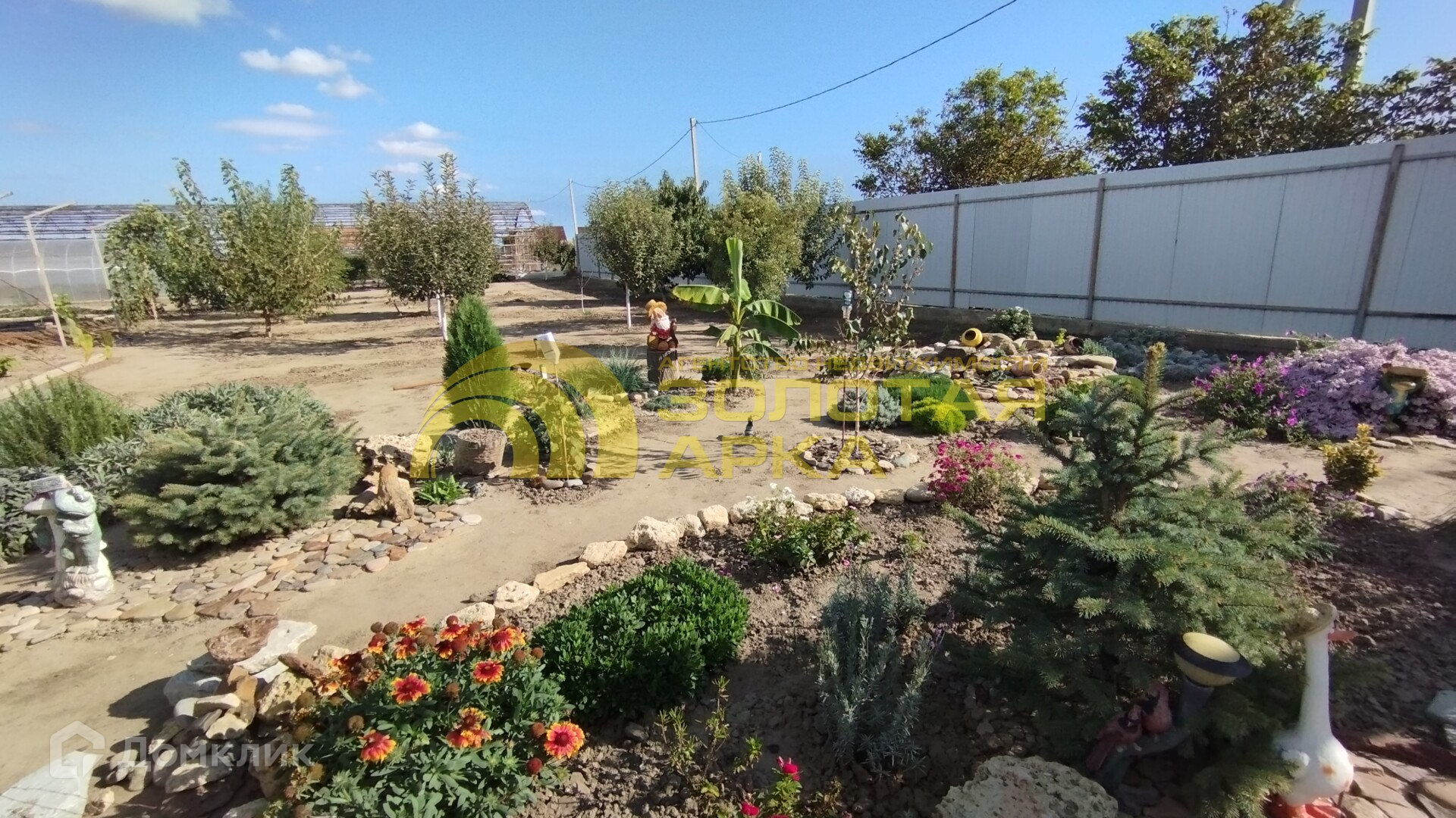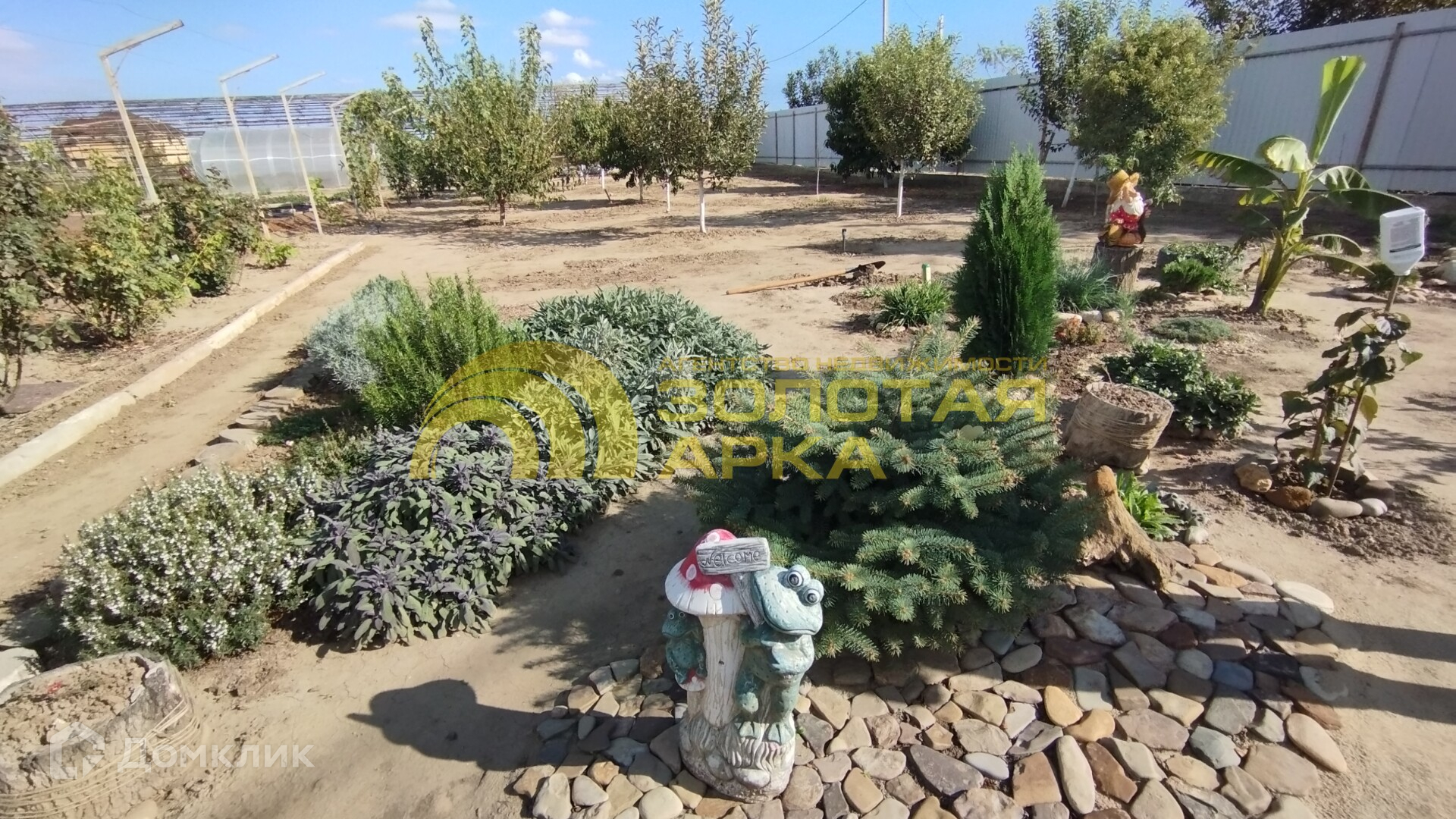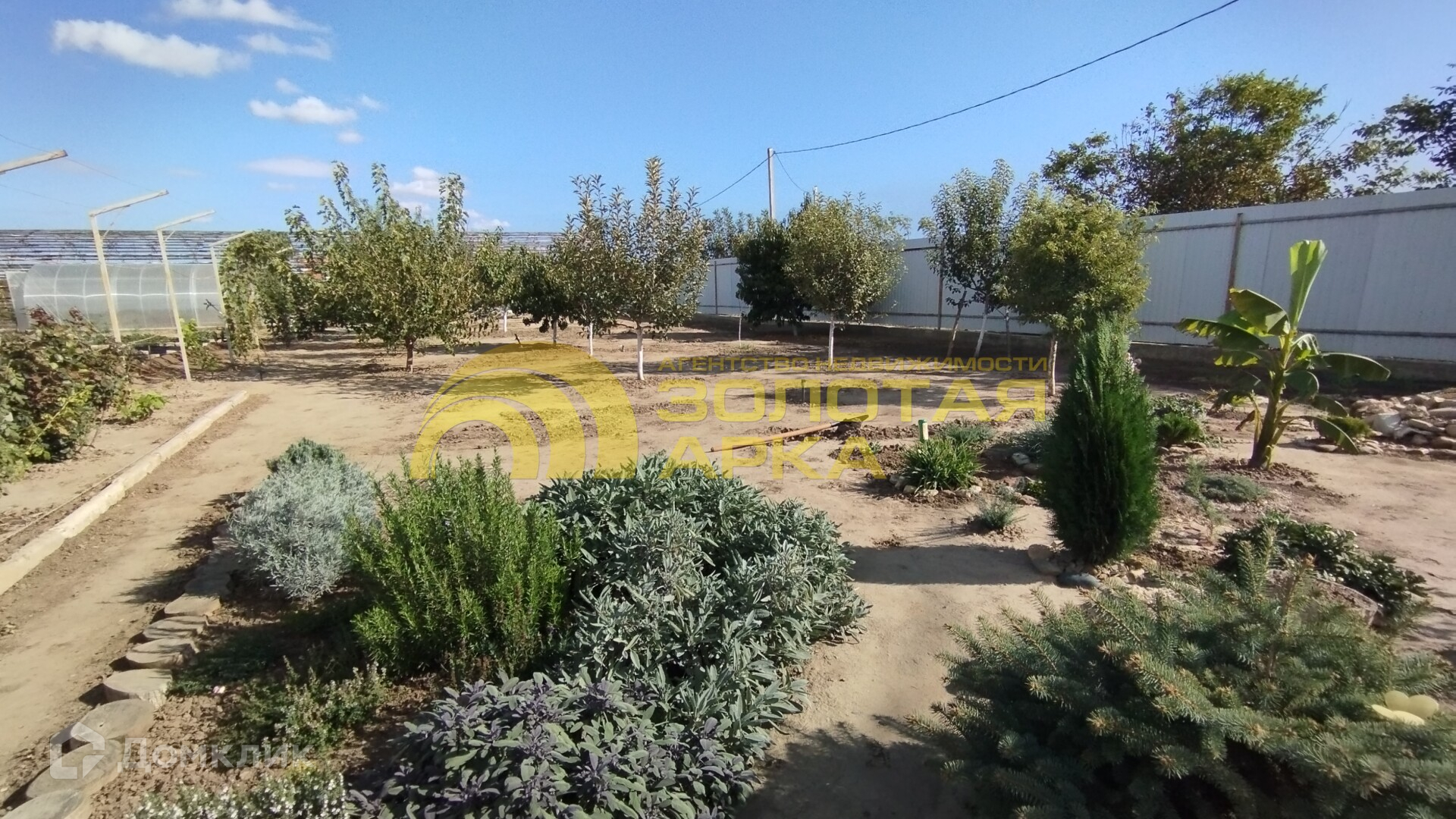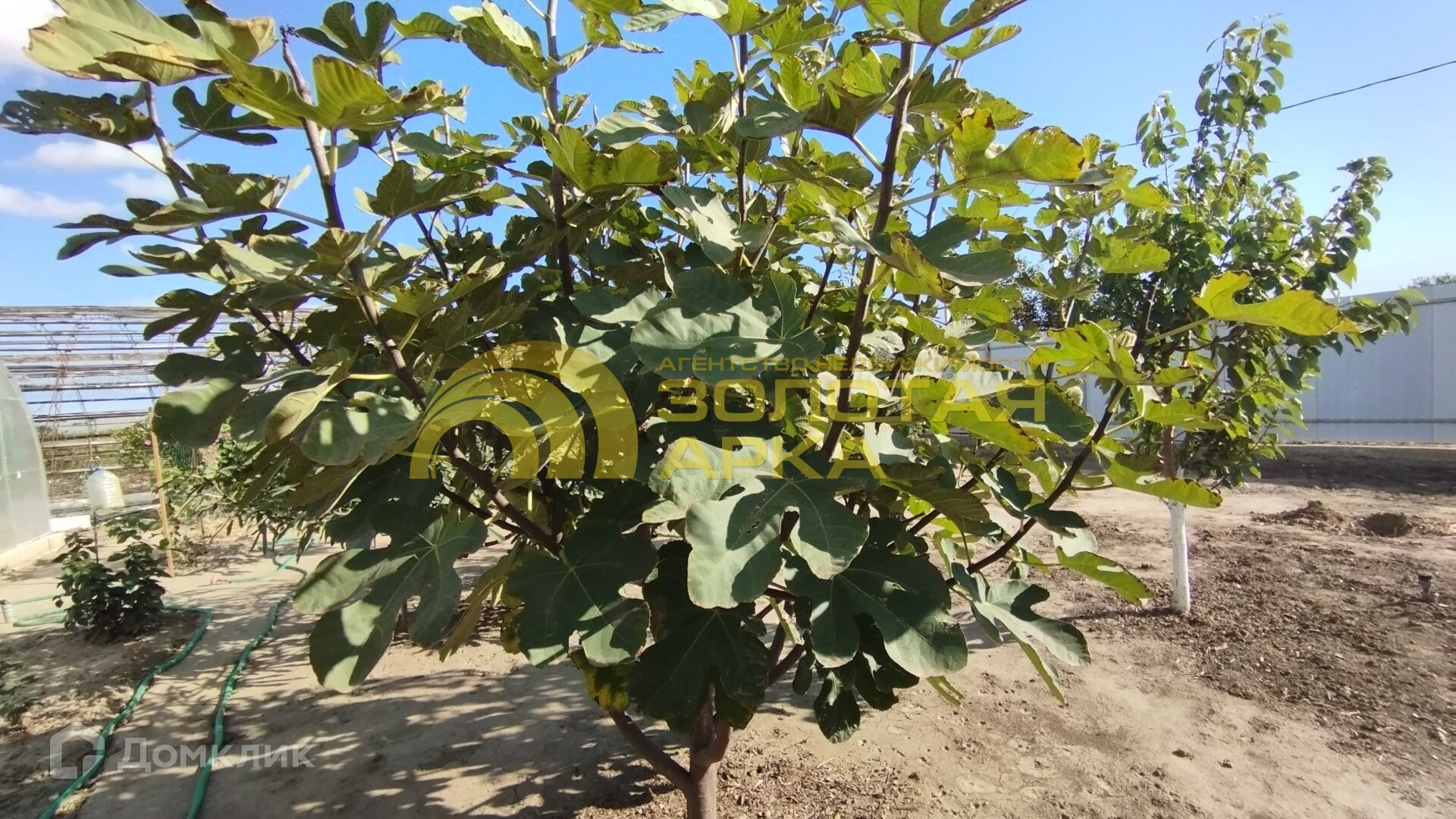 На участке молодой плодоносящий сад, виноград, есть теплица, хозпостройки, летний душ.