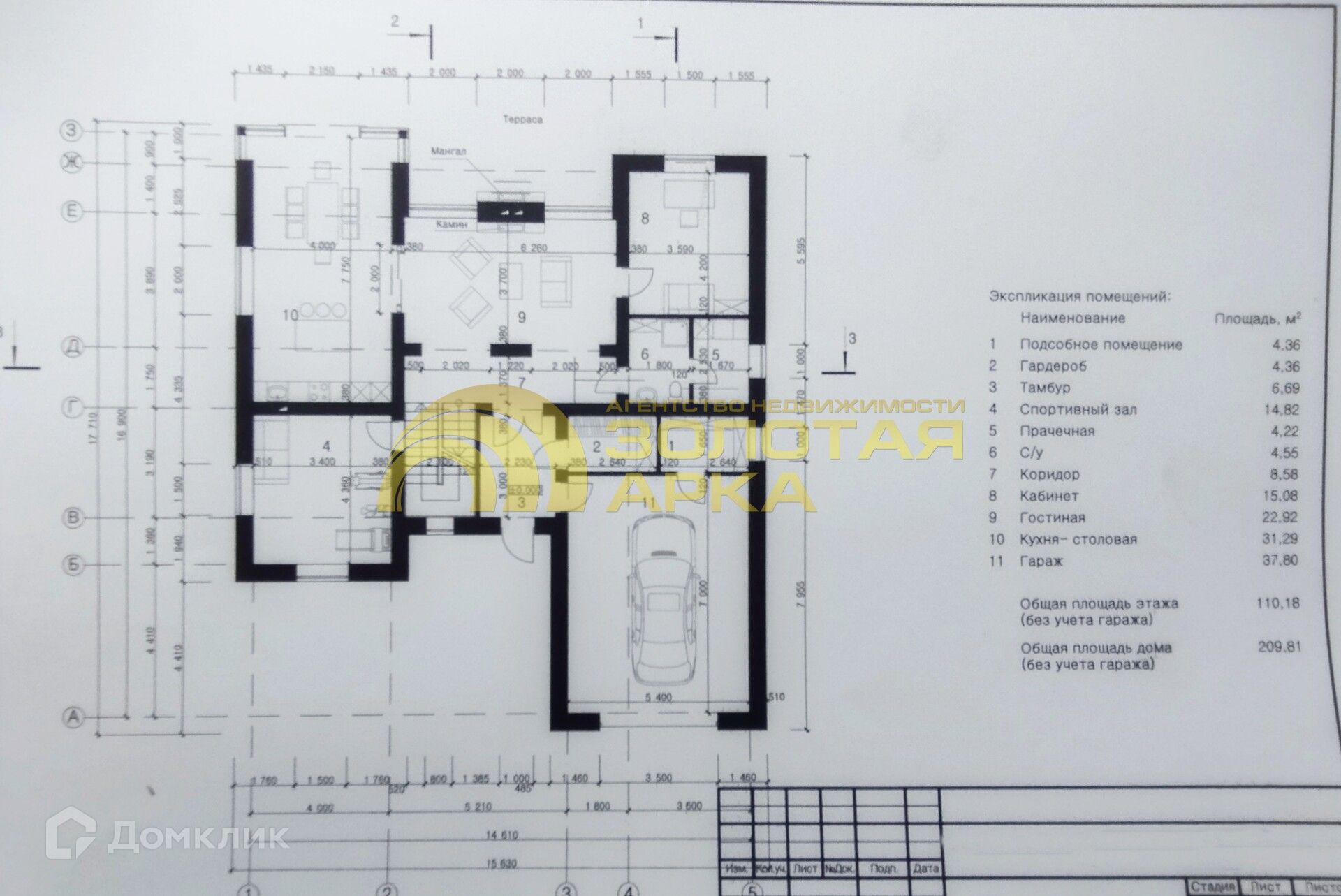 Площадь 1 этажа - 110 кв.м