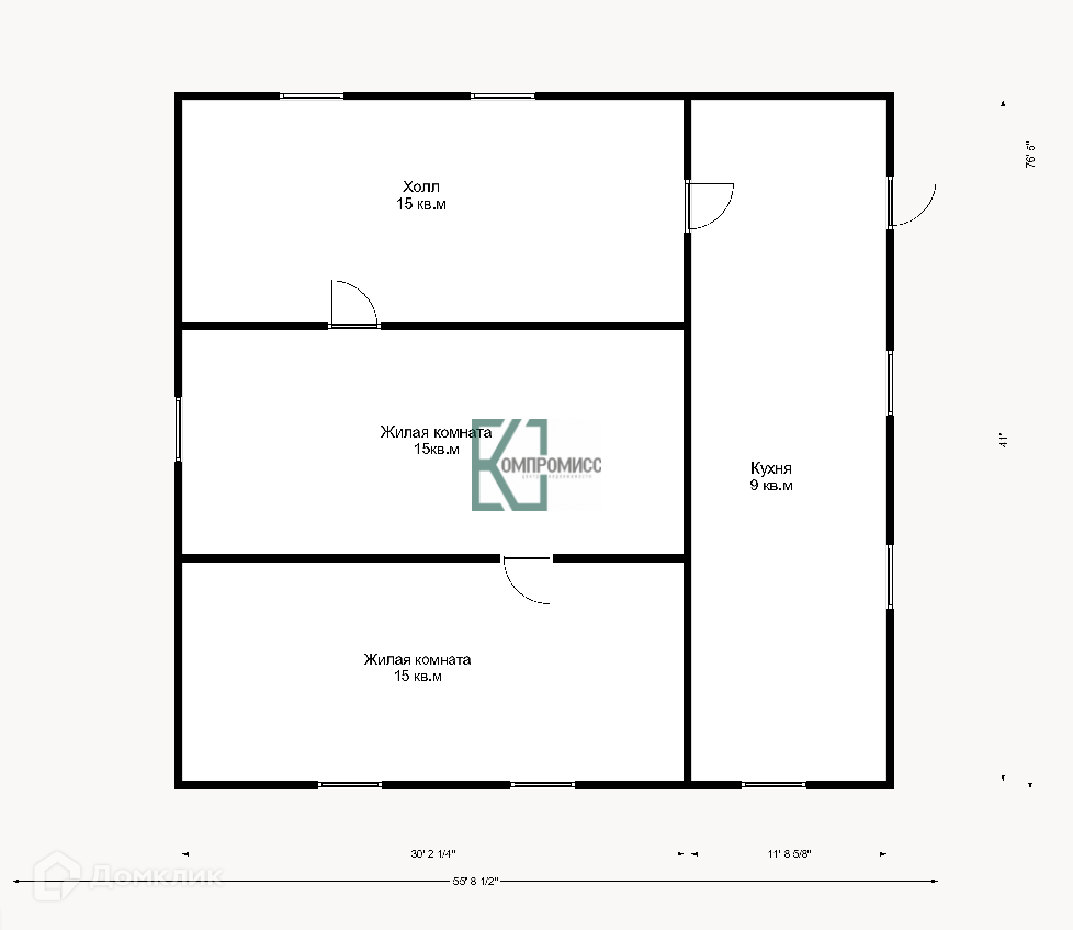 Общая площадь 58.5 м2