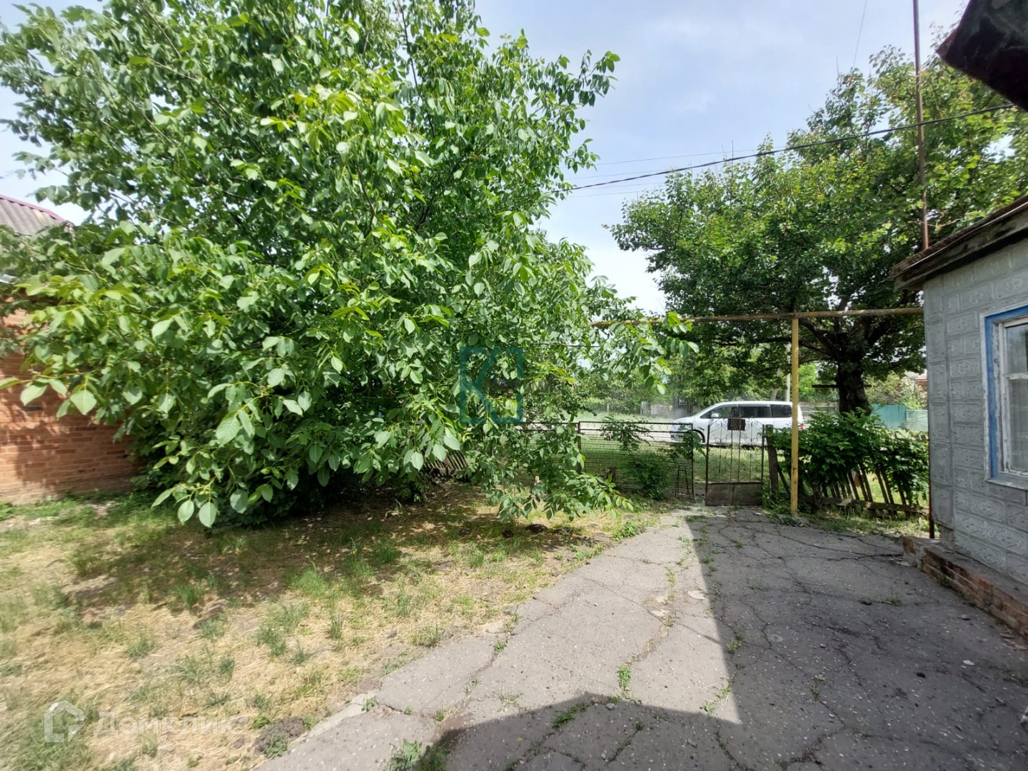 Весь участок огорожен забором, фасадный забор из металла, ворота – распашные. Двор асфальтированный.