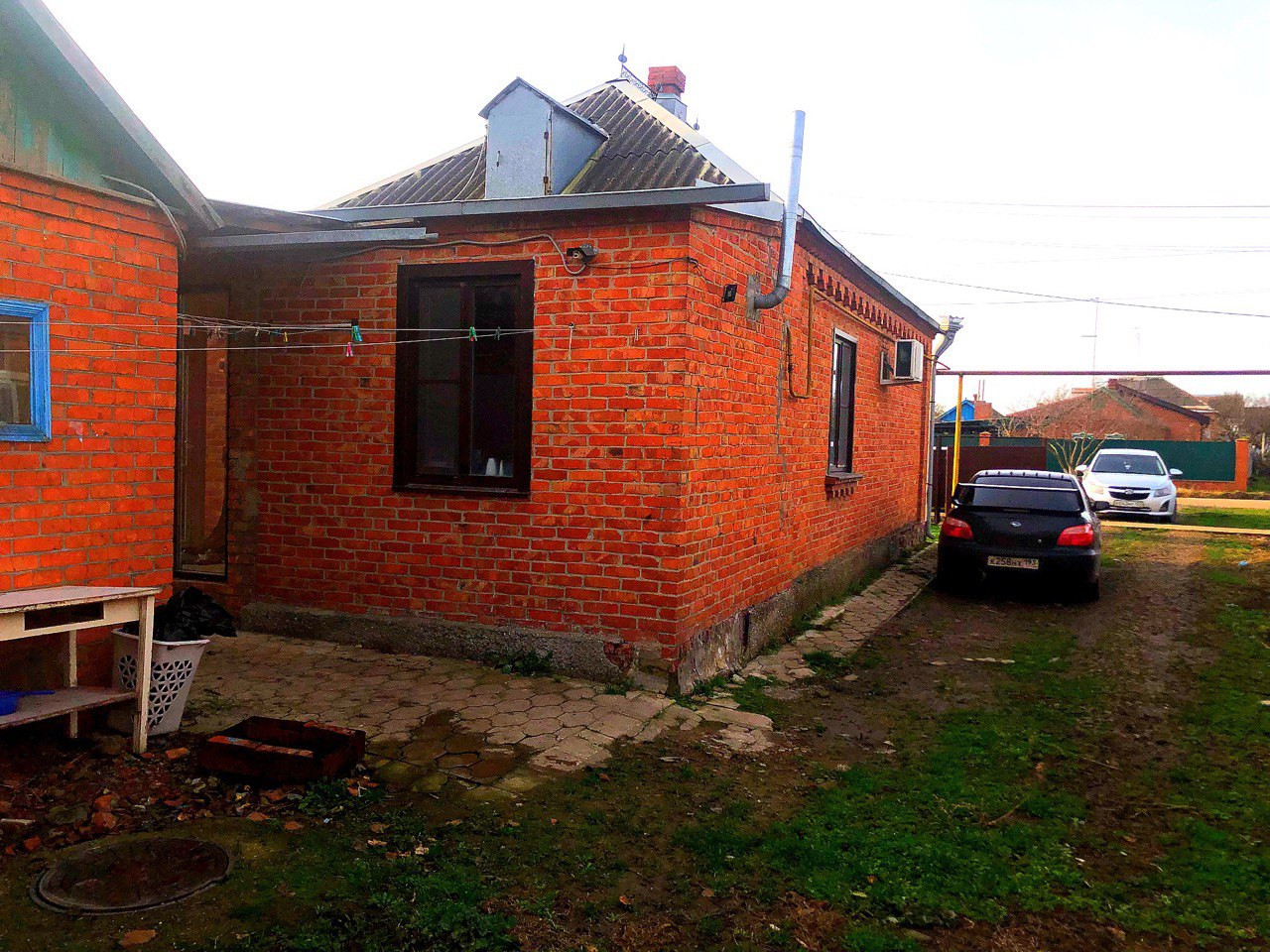 Много молодых плодовых деревьев: яблони, абрикосы, черешни. Малина и клубника, виноградная беседка, качеля! Заезд на 3 авто. Придомовая территория просторная, Можно парковать легковые или большегрузы.