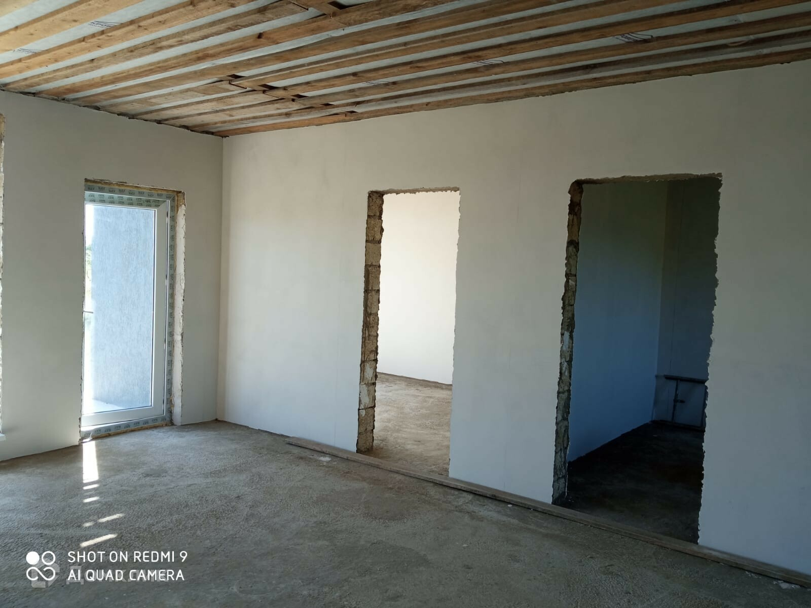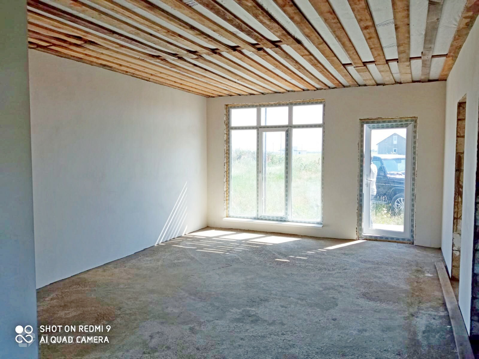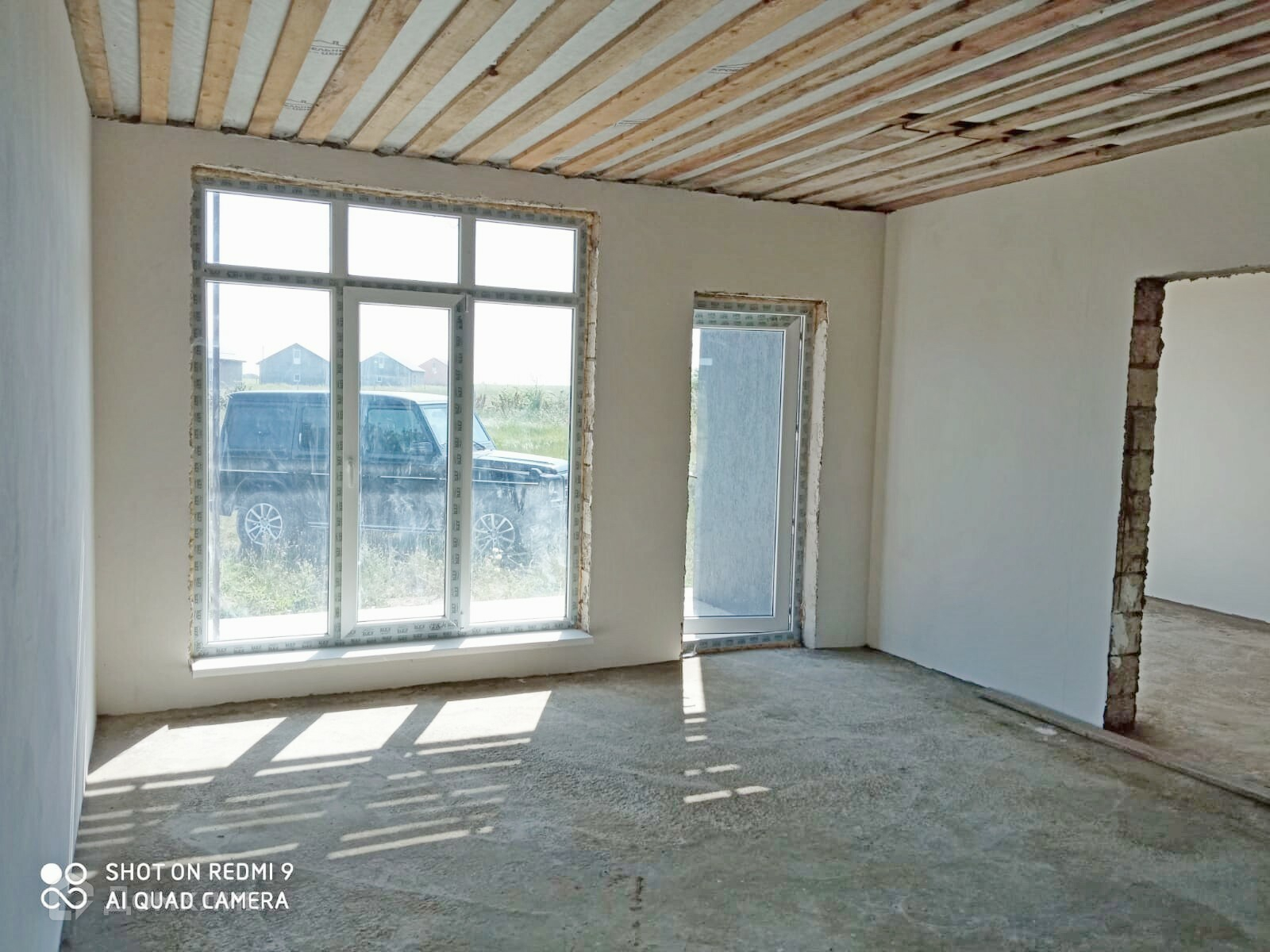 Дом в предчистовой отделке, на полу стяжка, осталось окрасить или оклеить стены, натянуть натяжной потолок, положить напольное покрытие и дом готов к проживанию.