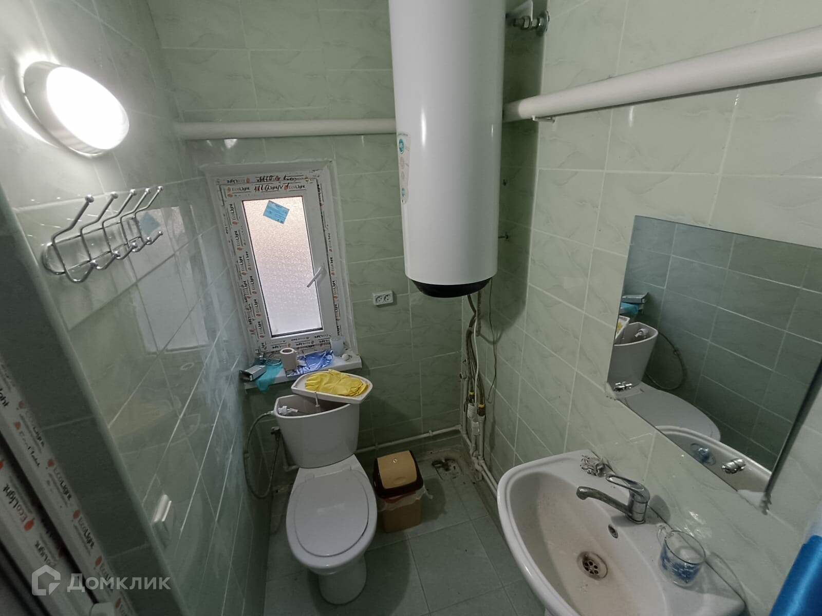 Туалет совмещен с ванной комнатой, сделано в плитке.