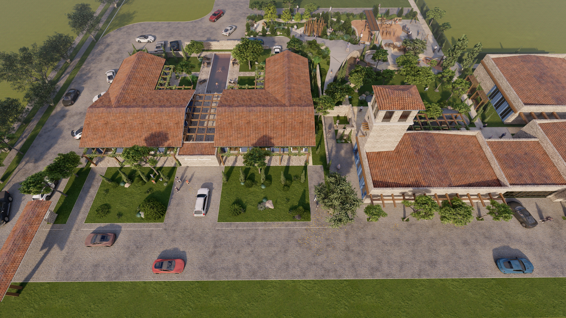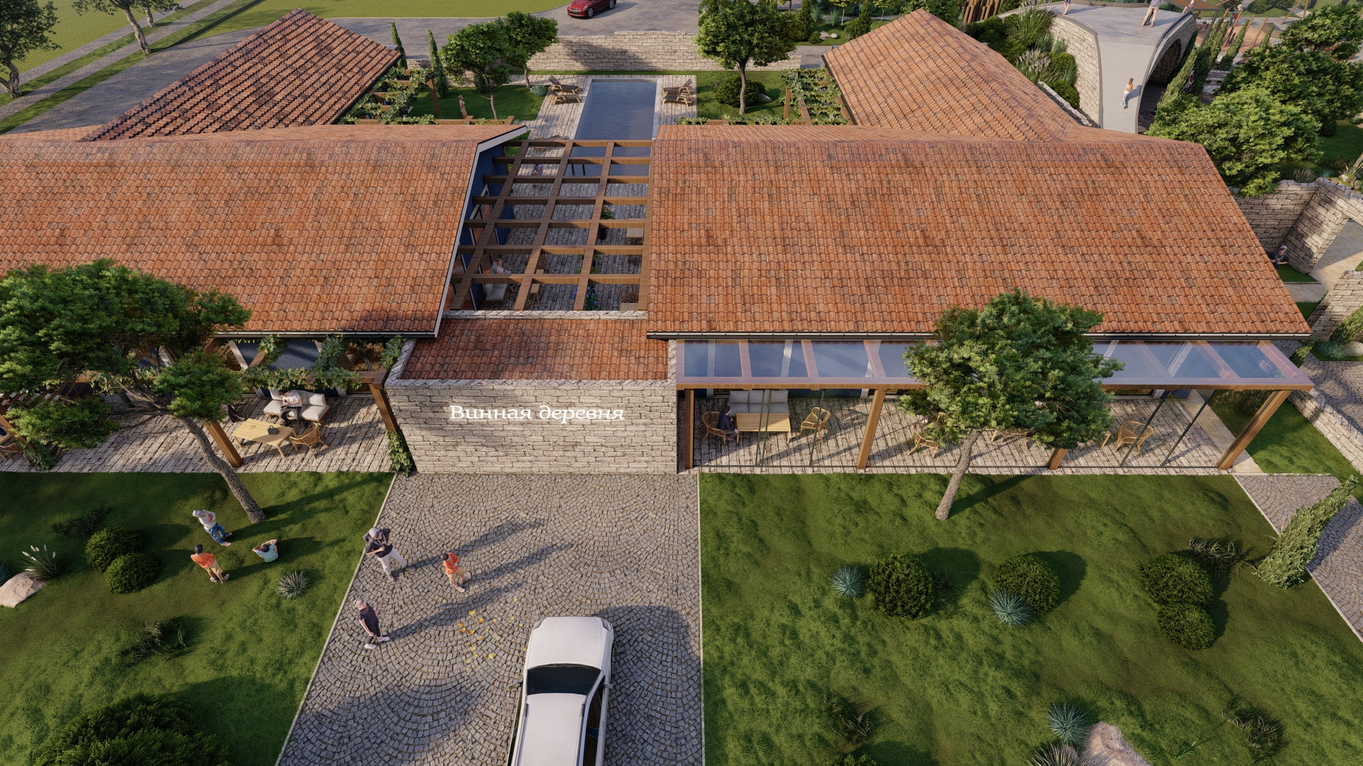 Комплекс апартаментов в посёлке расположен рядом с центральным парком и винодельней.