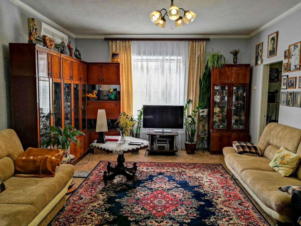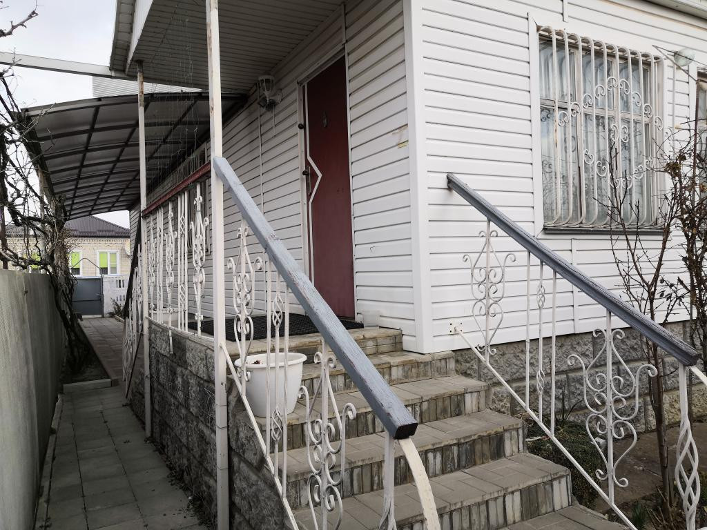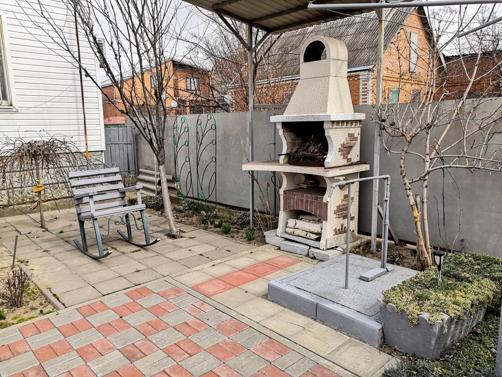 Станица Тбилисская. Район СОШ №6. Жилой кирпичный дом по ул. Почтовой, 2004 г. п. Индивидуальный проект. Общая площадь 80,8 кв. м, жилая – 41,6. Две комнаты (22,7 кв. м. + действующий камин, и 18,9 кв. м), просторная кухня – 13,7 кв. м.; раздельный санузел (3,8 + 1,4); коридор - 10,4 кв. м.; прихожая – 9,9. Высота всех помещений – 2,80 м. Свежий косметический ремонт. Дом газифицирован, есть газовые котёл и колонка, вода, все коммуникации. На участке есть капитальные хозяйственные постройки: гараж; помещение для летней кухни с розеткой под стационарную эл. плиту, большой подвал (сухой), сарай, навес. Есть и зоны отдыха: беседка, стационарный мангал, цветники. Двор, в том числе и внутренний – выложен тротуарной плиткой. Вдоль дома – навес из поликарбоната. Есть виноград, плодовые деревья. Земельный участок 364 кв. м., под ЛПХ. Фасад – 14,7 м. Дом и участок находятся под наблюдением вневедомственной охраны (сигнализация).