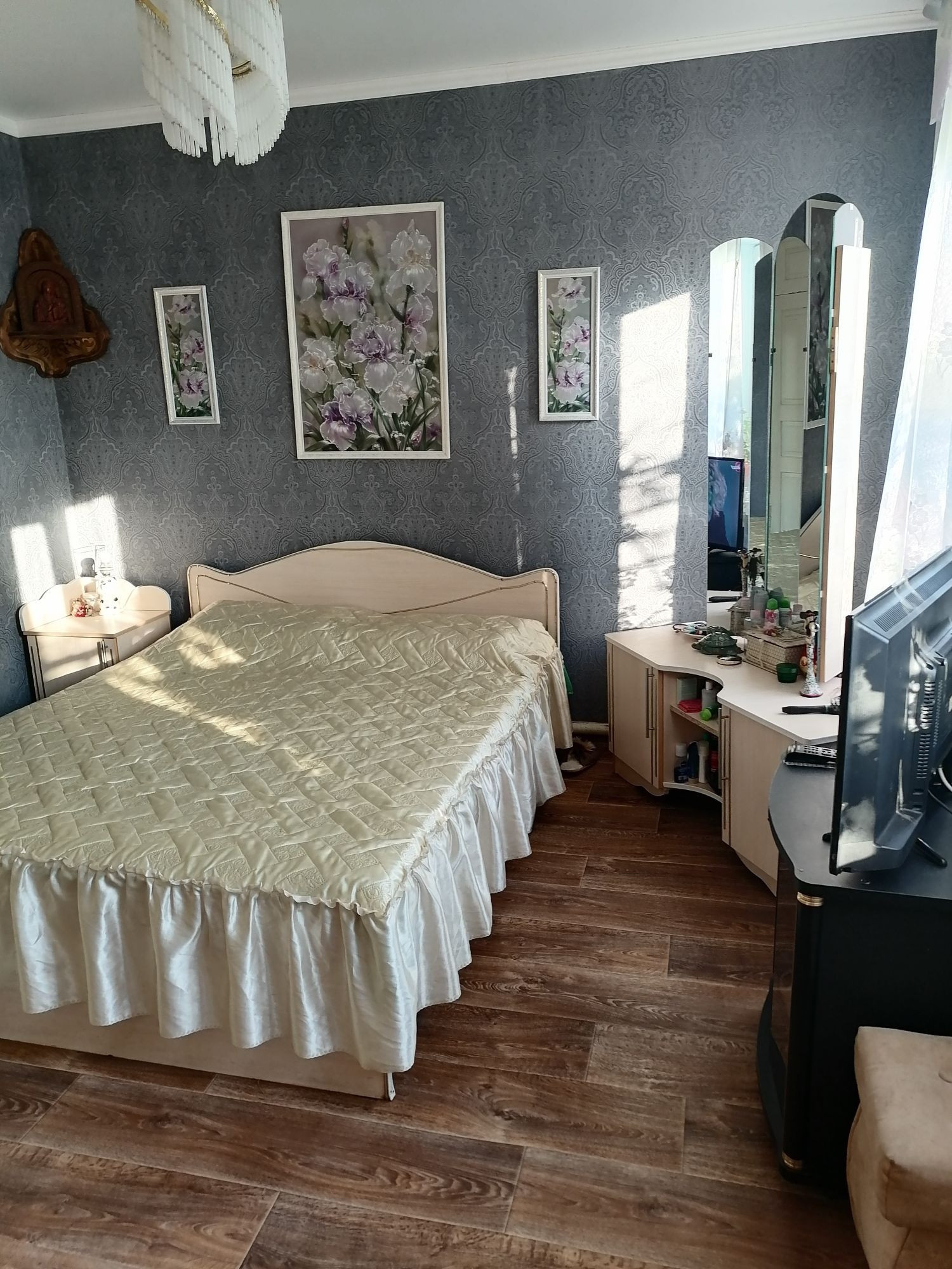 Продам кирпичный дом, общ.пл.67 кв.м,жилая 52 кв.м. в центре станицы. Два входа, три комнаты, навесные потолки, линолеум, большая кухня, общий санузел. Газ, две скважины для воды плюс сетевая. Два больших септика. Летняя кухня как гостевой дом с отоплением, газом, 42кв.м,в ней находится сауна. Между домами закрытый переход, кафель. Кирпичный гараж, два блочных сарая. Отдельно большой закрытый навес 11м длиной, бетонирован. Огород, молодой плодоносящий сад более 50 деревьев. Отдельно закрытый английский дворик и розарий. Туалет из итальянского кирпича. Все сделано основательно из новых современных материалов. Продам вместе с мебелью  техникой. Заходи   и живи. Станица большая, рядом две школы, школа искусств, Дом культуры, почта, аптеки, магазины.