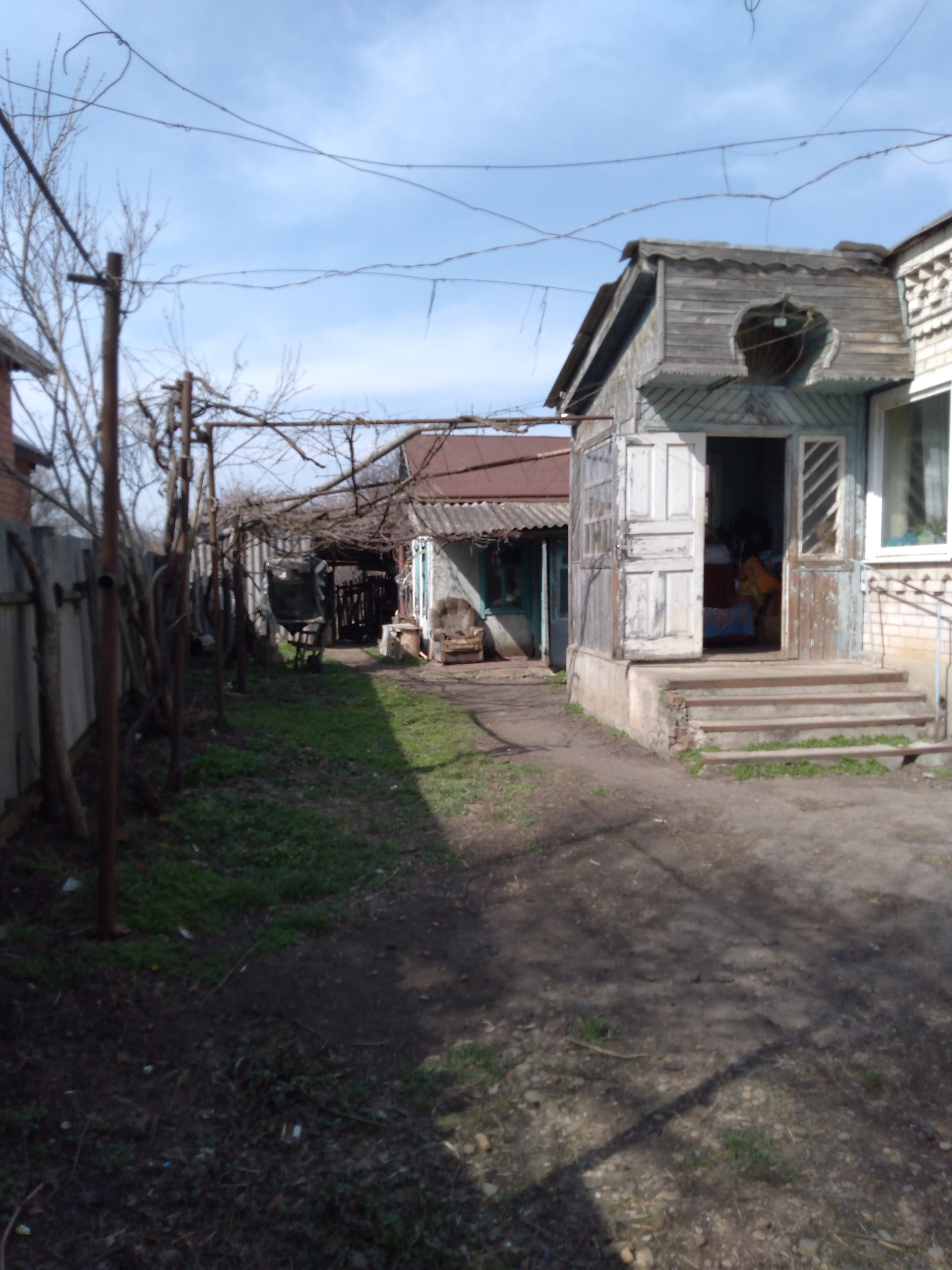Есть большой огород и огороженный сад. В саду фруктовые деревья, (яблони, айва, груша, персик, вишня, черешня, слива, алыча, 2 куста фундука, грецкие орехи, малина, ежевика, ирга). Можно в ипотеку, подходит под херсонский сертификат.
