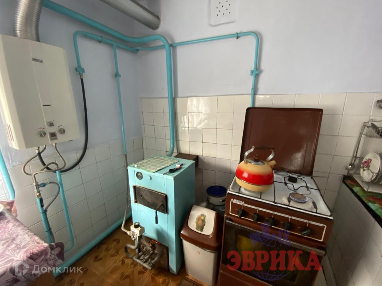 Установлен бойлер и газовая колонка.