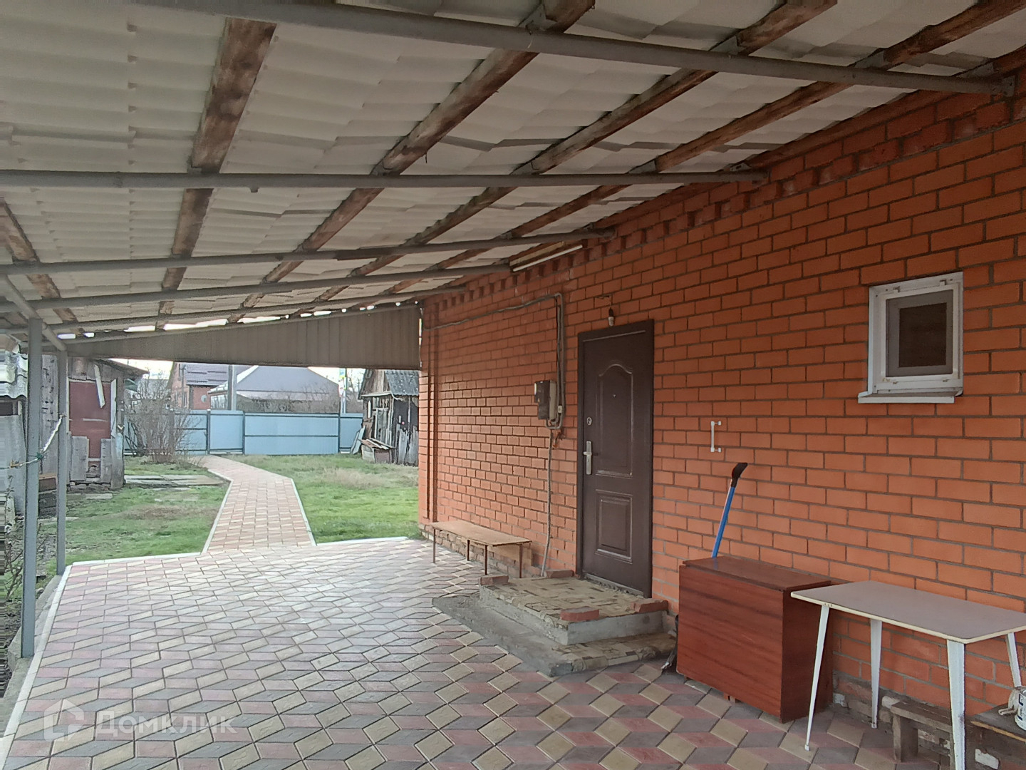 На территории землевладения есть еще один дом, который можно использовать как гостевой или летнюю кухню. Также есть большой навес ,выложен тротуарной плиткой, погреб, хозяйственные постройки.
