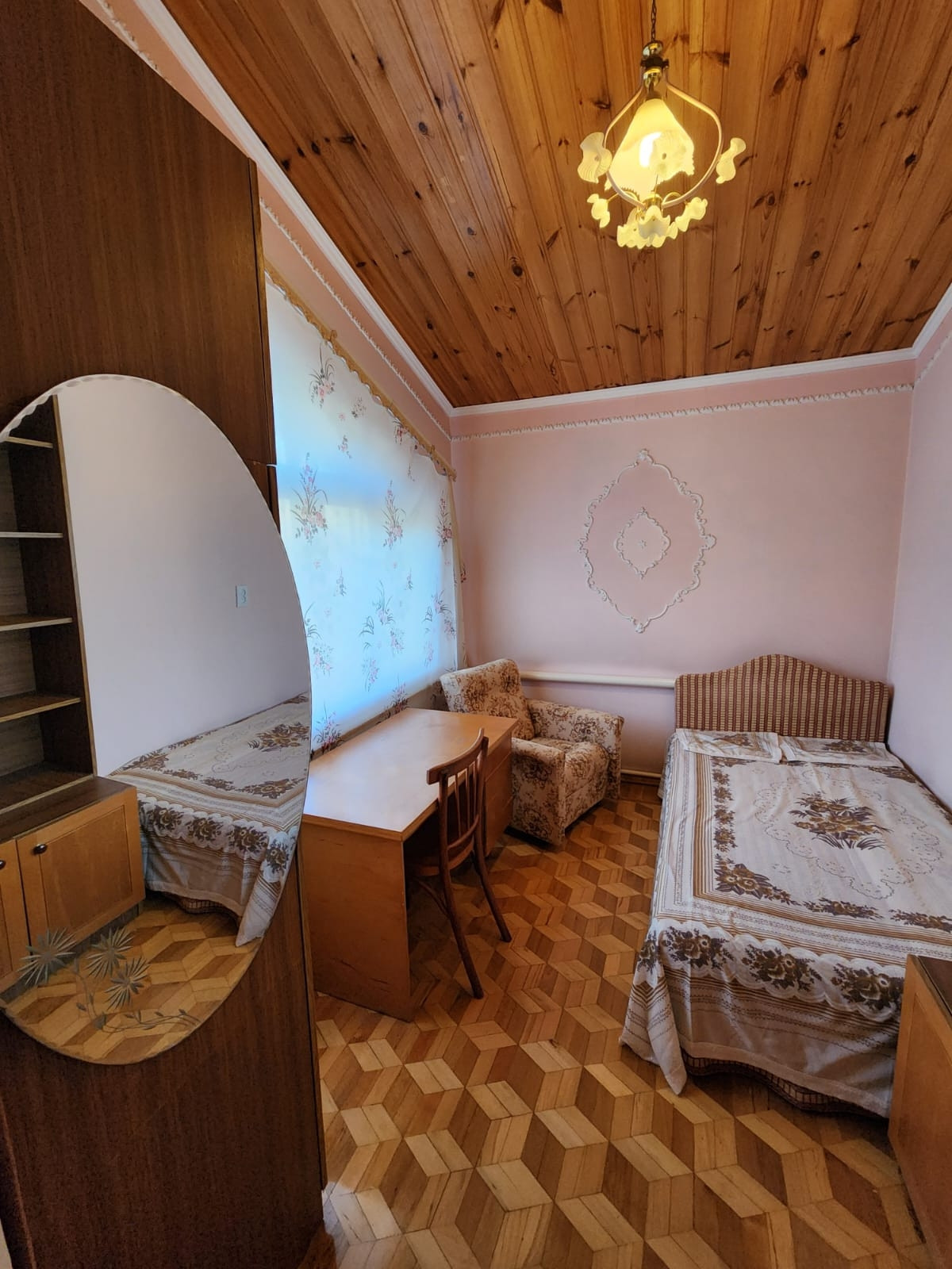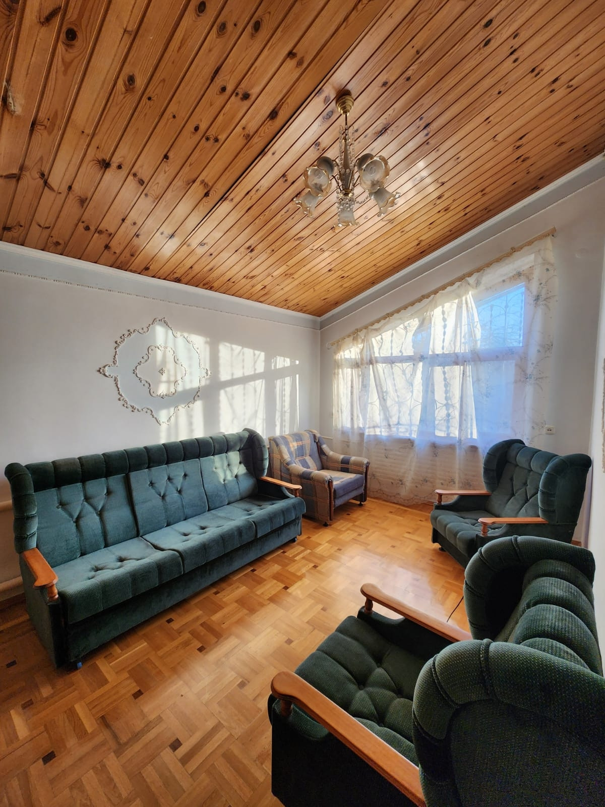 Дом состоит из трех комнат, кухня, баня, ванная комната, туалет и закрытая веранда на 2-м этаже с панорамным окном, обеспечивающие максимальное количество естественного света. Вид деревянного покрытия пола – наборный паркет. Потолок из дерева. В доме уютный кирпичный камин, построенный по всем правилам с хорошей вытяжкой. Отопление в доме- электрический и газовый котел отопления. Погреб. Гараж, который можно переделать под жилую комнату. Открытая веранда (уличная) с перилами, пол из гранита.