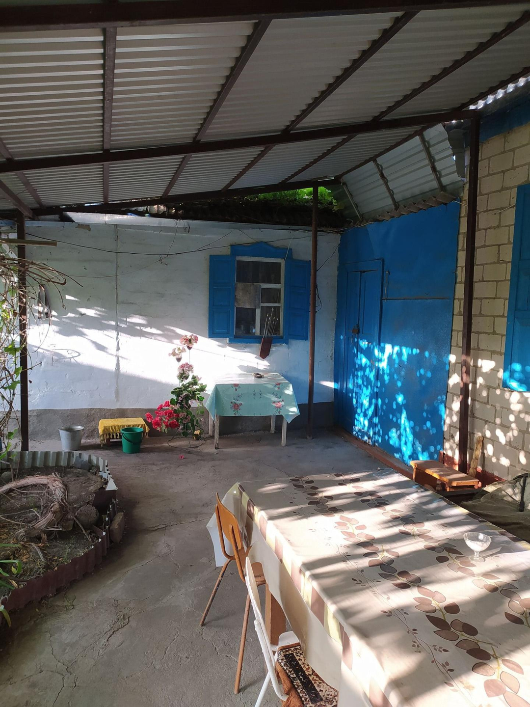 Дом перекрыт металло профилем, двор асфальт. Отапливаемая летняя кухня (кухня, ванная, столовая). Гостевой домик. Возможно проживание двух семей. Гараж, хоз постройки. На огороде посажены фруктовые деревья, кустарники. Полив скважина, колодец.