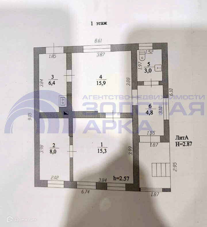 Общая площадь 53.4 м2