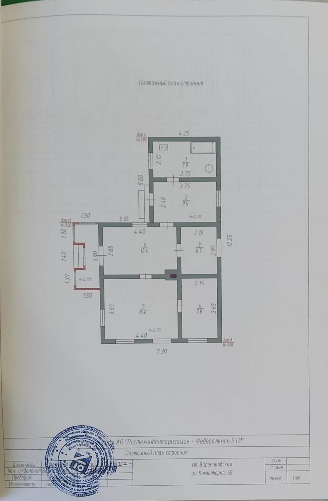 1-этажный дом, 59.2 м2, на продажу в станице Варениковской, улица Коминтерна, 65