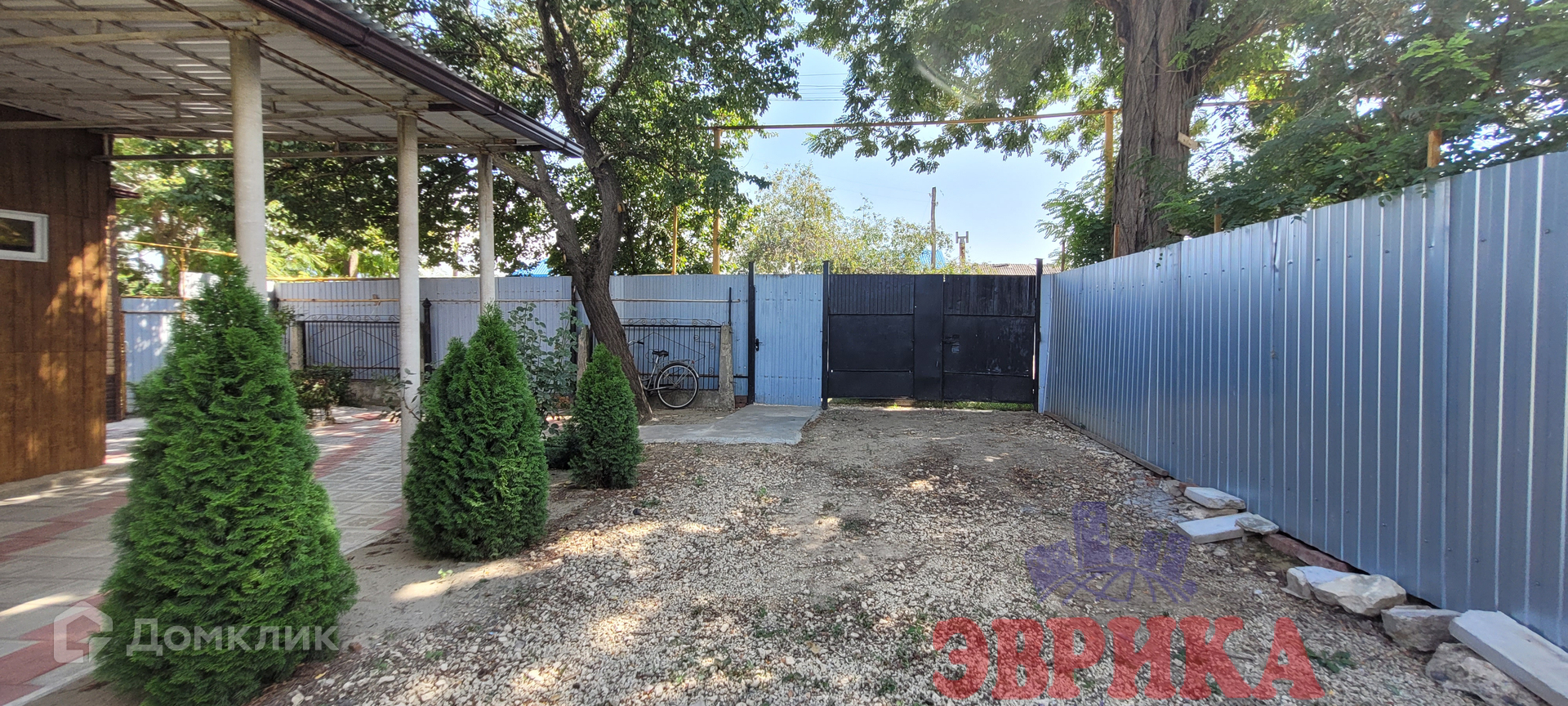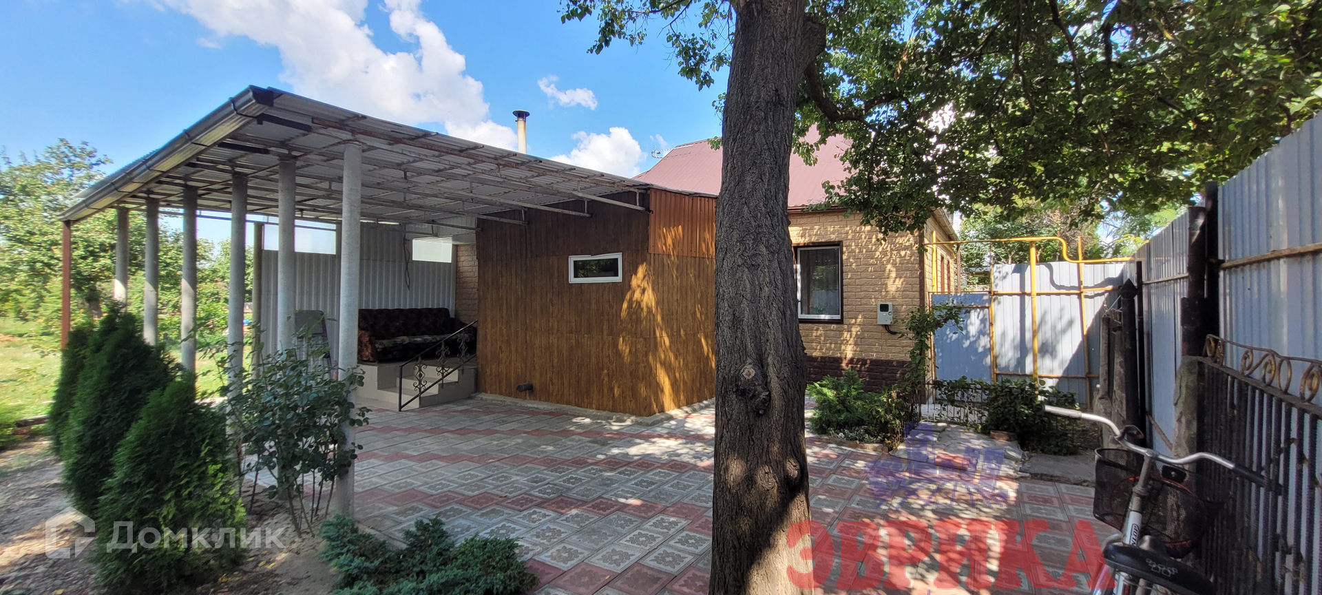 Двор благоустроен - выложен плиткой, укрыт капитальным навесом, огорожен забором.
