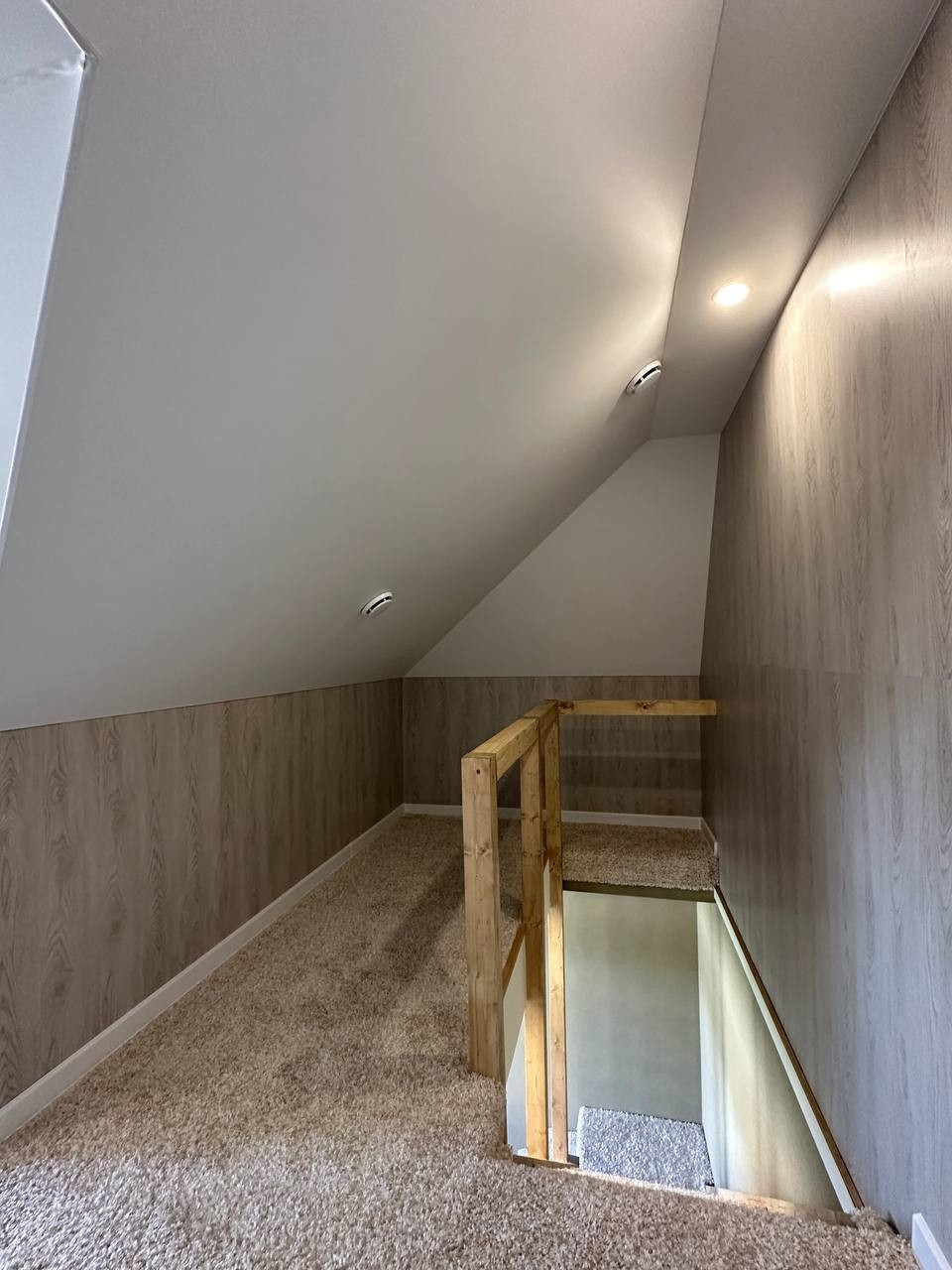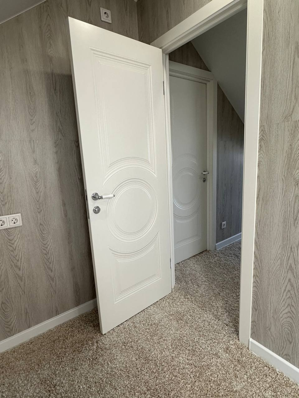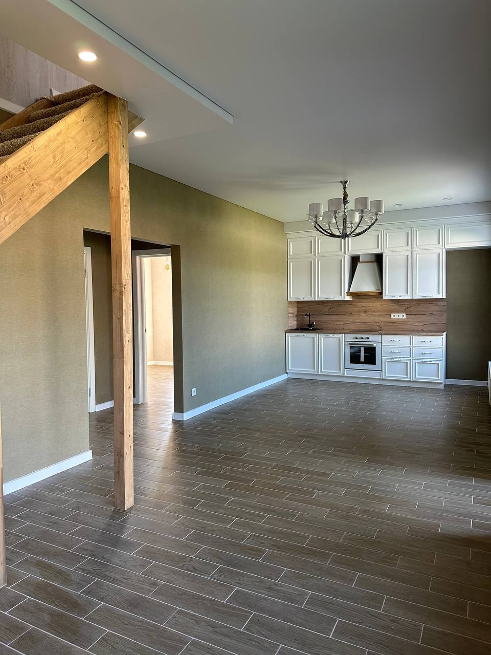 на первом этаже, прихожая, зал с кухней, две спальни, санузел. Второй этаж две спальни и гардеробная.