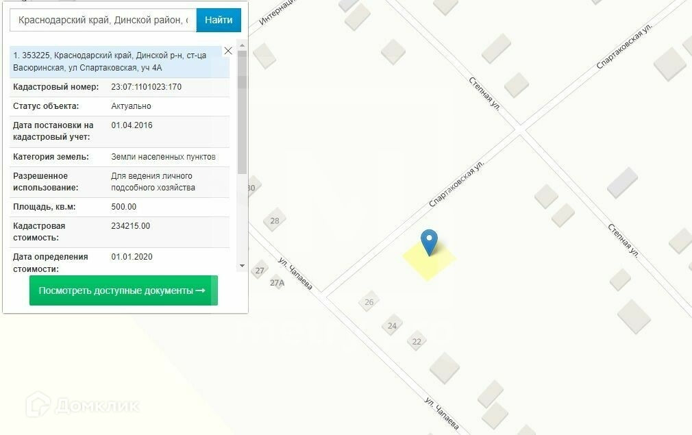 Адрес участка: ст. Васюринская, ул. Спартаковская, 4а.