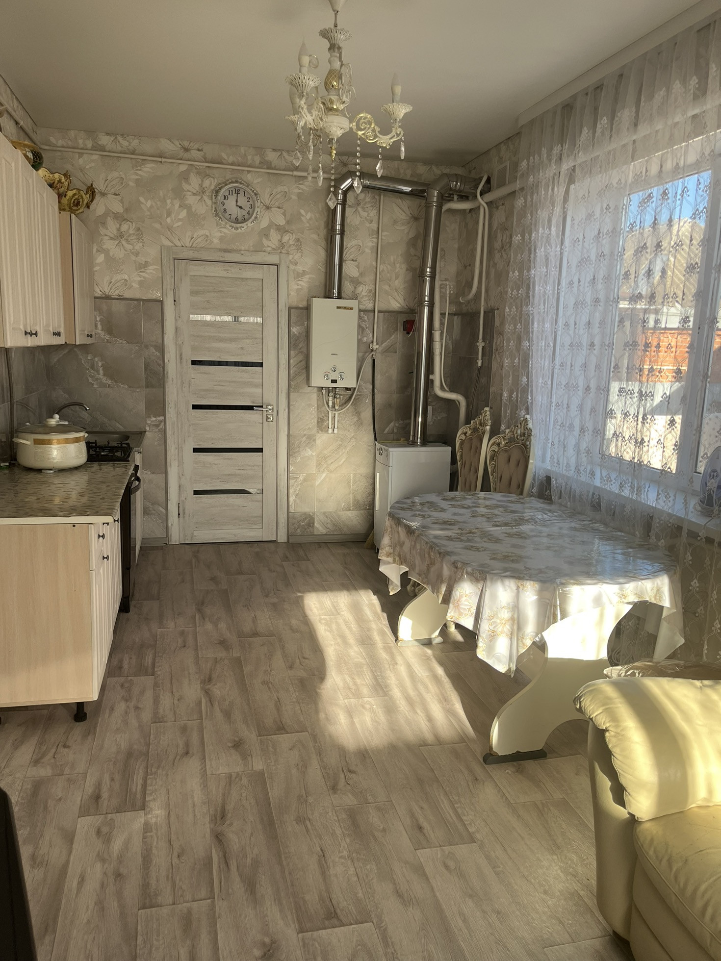 Поменян центральный котел, пол на кухни и прихожей тоже делали ( все разбивали и заливали) стяжку ( теплые полы не стали ложить, так как дом и так теплый.)