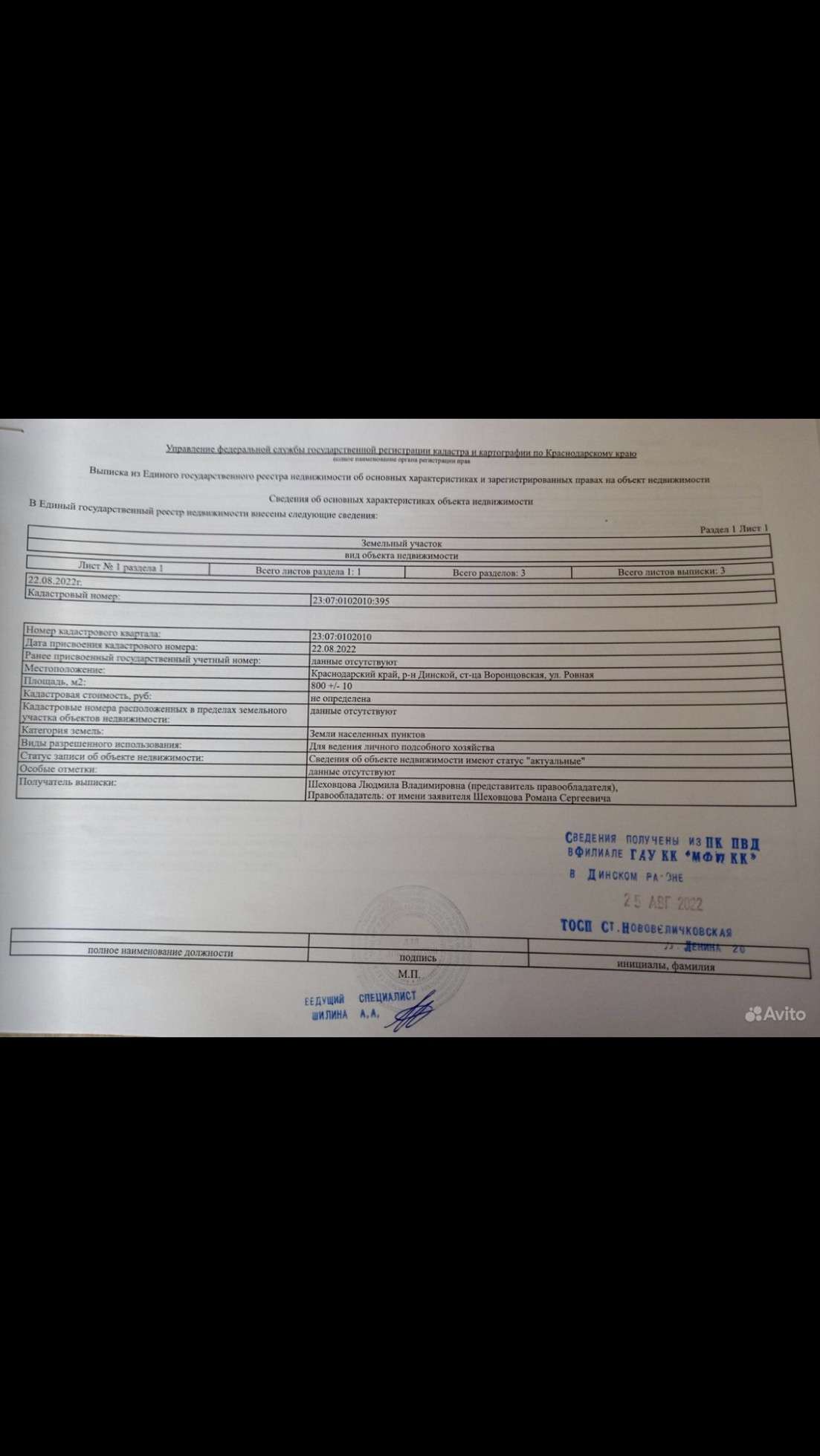 Участок под ИЖС, 8 сот. на продажу в станице Воронцовской, Ровная улица, 7