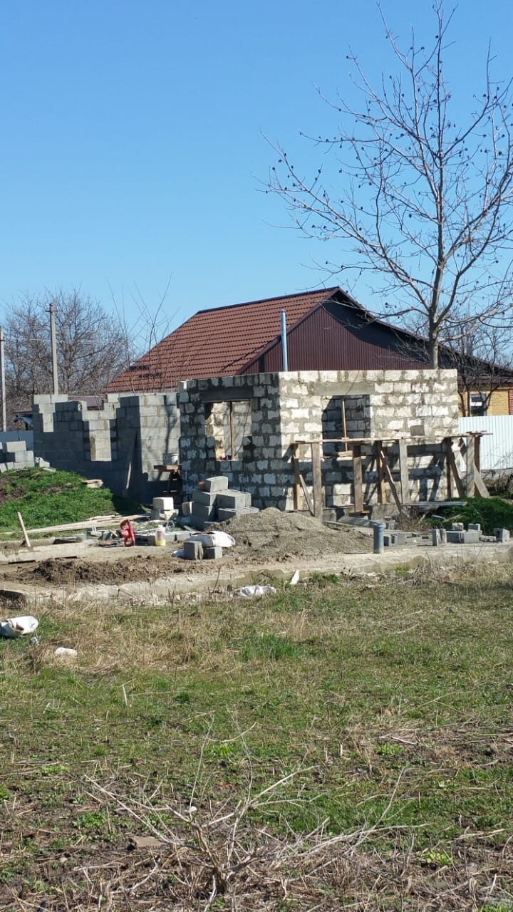 Продается участок ИЖС под строительство в центре станицы Вознесенская (Краснодарский край), в районе церкви. Участок 16 соток, ровный, прямоугольный. Широкая улица, хорошие соседи, газ, канализация, центр. Водопровод, электричество. На участке два фундамента-плиты: (11×8×25 под дом, и 6×4×25 под кухню, гостевой домик, баню и пр.), а также недостроенный хозблок 11×4 на три помещения. Два кирпичных погреба - в хозблоке (3×4×2,7) и в доме (2×1,5×2,7).
