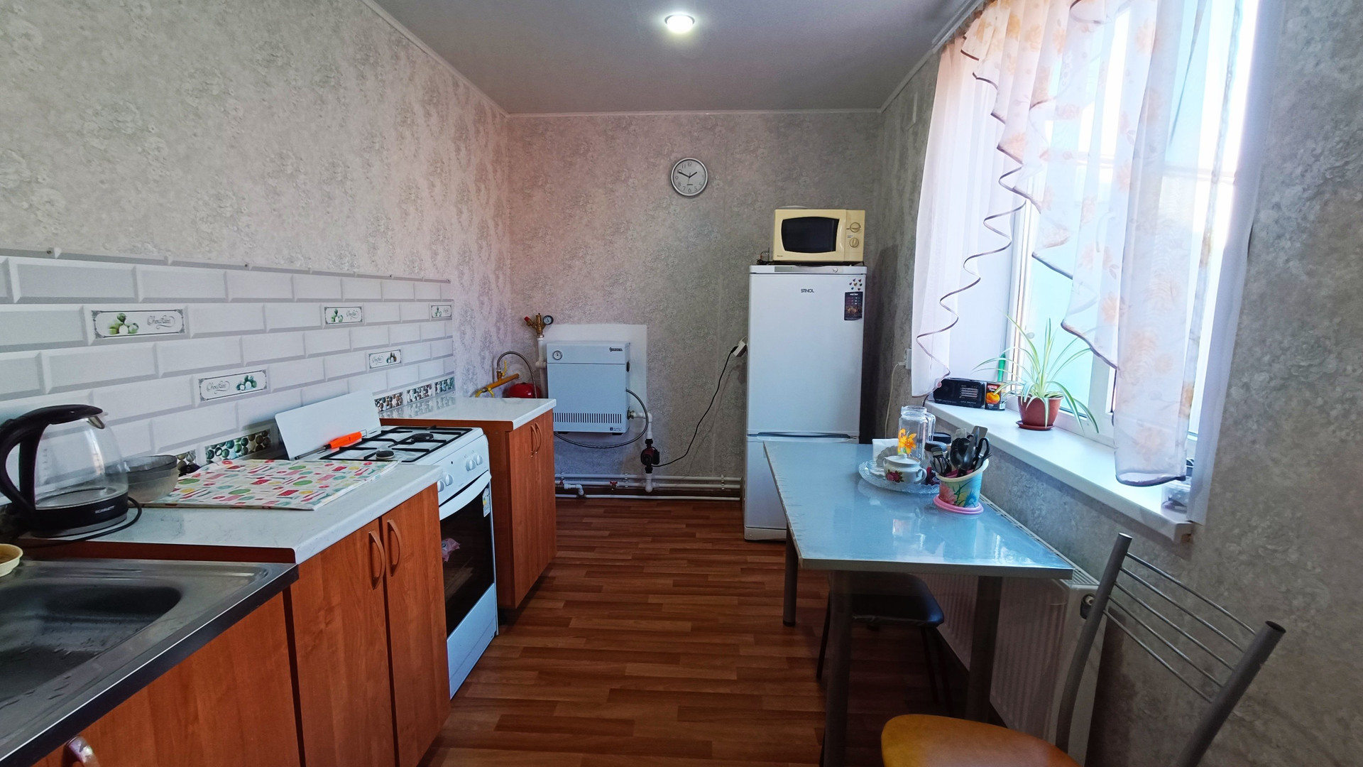 Кирпичное домовладение, кровля - металлопрофиль, о.п. 50,5 кв.м., расположенное в ст. Выселки по ул. Ткаченко. Состоит из двух жилых комнат раздельного расположения, кухни, с/у и коридора. На стенах обои нейтральных цветов, натяжные потолки, полы застелены линолеумом. В кухне стены оклеены обоями, рабочая зона обшита “фальш-панелью”, натяжной потолок, пол застелен линолеумом. С/у совмещенный, облицован плиткой. Установлены металлопластиковые окна. Счетчики на коммуникации. Сплит-система. Бойлер. Отопление - газовый котел. Входная дверь - деревянная. Из хоз.построек: сарай, зона барбекю. Канализация - септик. Ухоженный земельный участок 4,49 сотки, с фруктовыми деревьями и кустарниками. Есть виноградник и палисадник. Территория двора вымощена тротуарной плиткой. Металлопрофильный забор, ширина фасада 12,2 м.. За двором есть место для стоянки автомобиля. Инфраструктура района развита, в шаговой доступности магазины различных групп товаров, авто и ЖД вокзалы, центр станицы