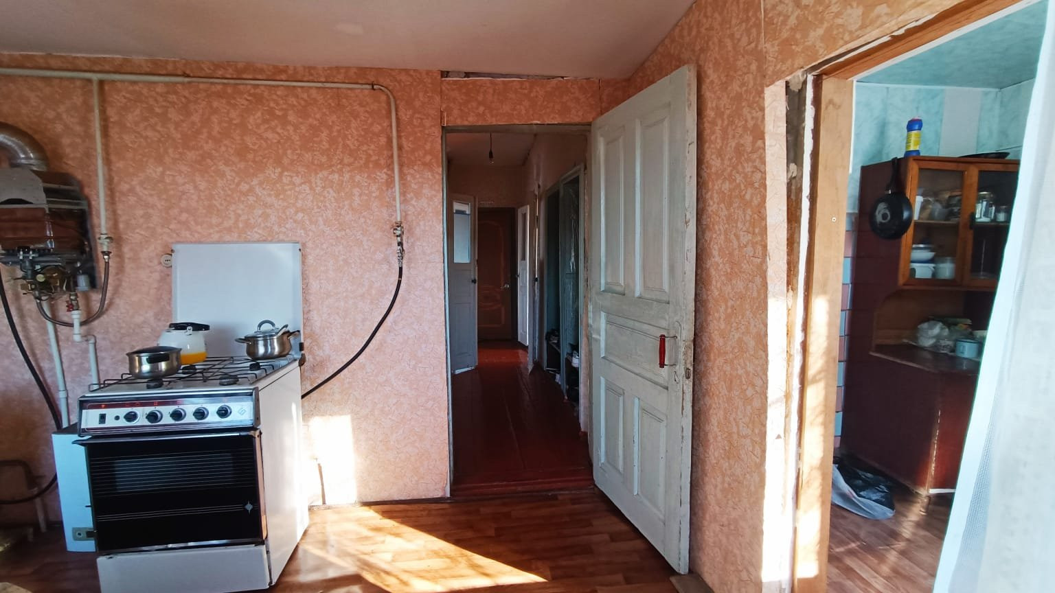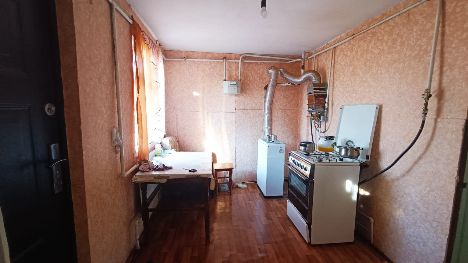 Угловое кирпичное домовладение, кровля - шифер, о.п. 84,5 кв.м., расположенное в ст. Выселки по ул. Кооперативная. Состоит из четырех комнат смежно-раздельного расположения, кухни, с/у и коридоров. На стенах обои нейтральных оттенков, потолок побелен, в одной из комнат - потолочная плитка, полы застелены листами ДВП. В кухне стены оклеены обоями, потолок окрашен водоэмульсионной краской, пол застелен линолеумом. С/у совмещенный, обшит пластиковыми панелями. Частично, установлены, металлопластиковые окна. Счетчики на все коммуникации. Сплит-система. автоматический газовый водонагреватель. Отопление - напольный газовый котел. Входная дверь - металлическая. Перед входом в дом построен навес. Канализация - септик. Из хоз.построек: летняя кухня, гараж на одну машину, сарай, баня. Земельный участок 8,43 соток, с фруктовыми деревьями и кустарниками. Железный забор, ширина фасада 27 м.. За двором есть место для стоянки автомобилей. Инфраструктура района развита, в шаговой доступности магазины различных групп товаров, центральный рынок